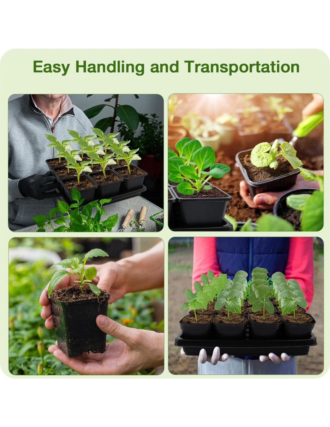 - [Ajuste Perfecto] Nuestro kit de plántulas incluye 80 tazas para plántulas y 5 bandejas para plántulas, con dimensiones de bandeja que acomodan precisamente 4*4 tazas para plántulas. Diga adiós a las tazas que se mueven durante el movimiento de la bandeja y hola a una experiencia de jardinería sin problemas.
