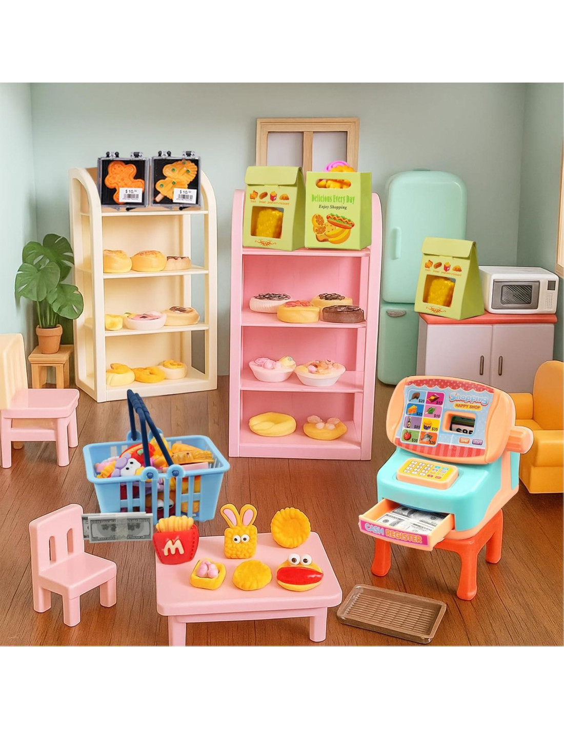 - Diseño Realista La mini caja registradora incluye cajones funcionales diseñados para sostener dinero de juego, mejorando los escenarios de compras simuladas. La cesta de compras sostiene de manera segura artículos en miniatura y es compatible con las piezas de comida/bebida incluidas para un juego inmersivo. Cuatro estantes resistentes (diseño de 4 niveles) cuentan con una construcción estable para soportar accesorios durante el juego. Los estantes también pueden organizar otros juguetes pequeños cuando no se utilizan con este conjunto.