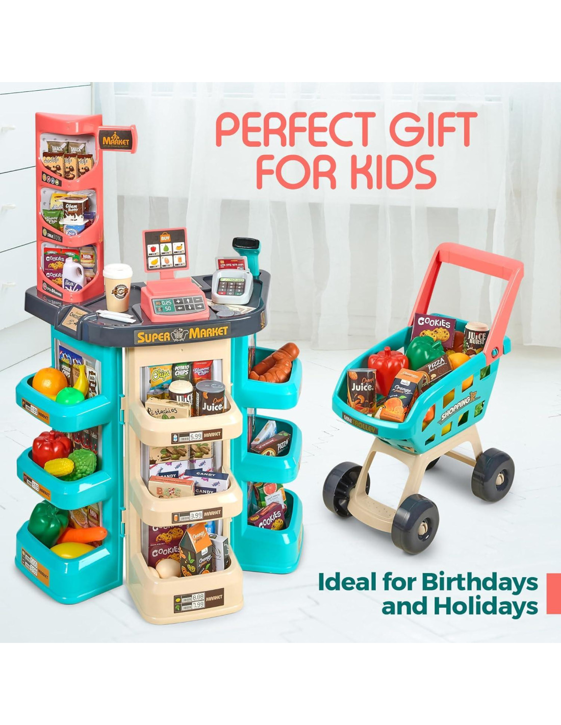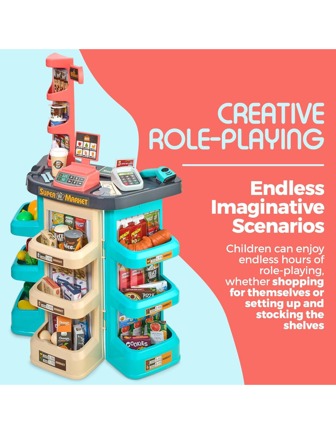 - JUEGO CREATIVO E IMAGINATIVO: Deja que tu aspirante a emprendedor tenga un buen comienzo con nuestro Conjunto de Supermercado para Niños. Ya sea comprando para sí mismos o organizando y llenando los estantes, este conjunto de juego permite a los niños disfrutar de horas interminables de diversión de juego de roles. El juguete los anima a ser imaginativos y crear diferentes historias cada vez que juegan.