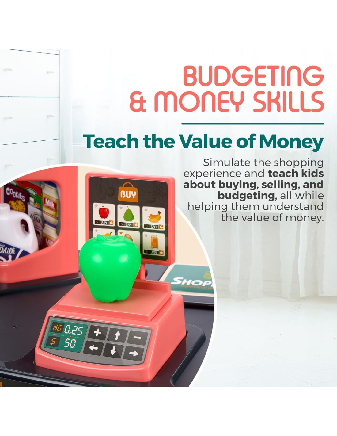 - EDUCATIVO Y DIVERTIDO: Mientras juegan con el conjunto de compras, tu hijo desarrollará el reconocimiento de colores, habilidades organizativas, coordinación mano-ojo y habilidades motoras finas. Simulando la experiencia de compra, tu hijo aprenderá a comprar, vender y presupuestar mientras aprende el valor del dinero.