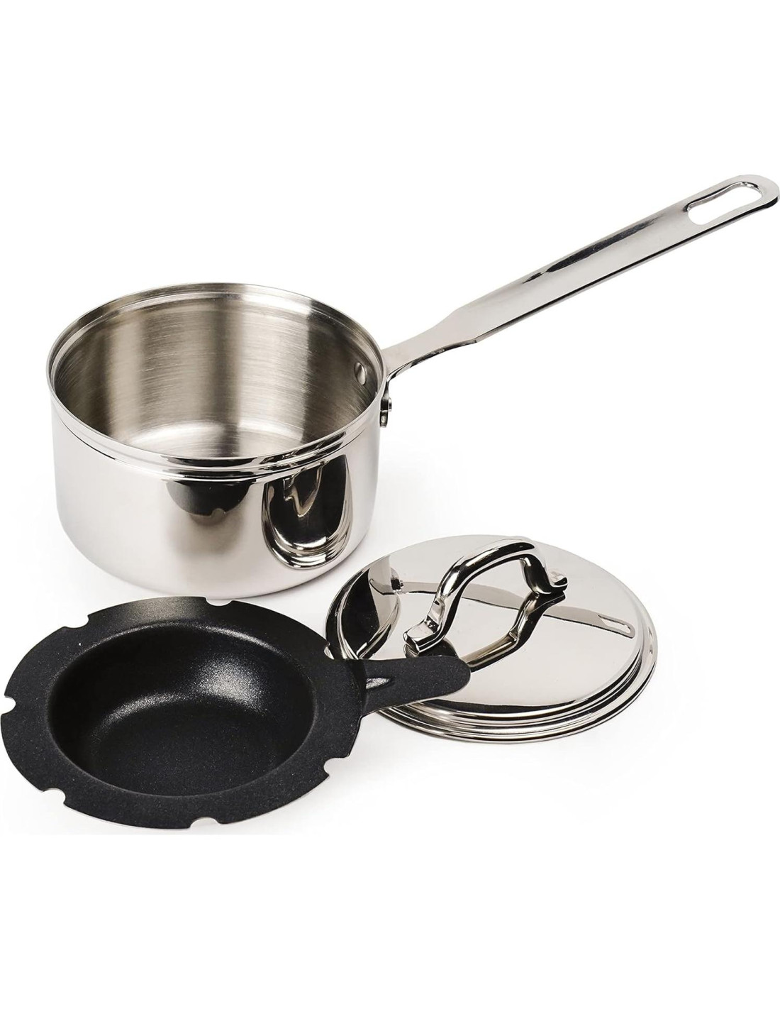 - INCLUYE: Un inserto de poach antiadherente que cocina un huevo a la vez, junto con una sartén de acero inoxidable con un mango largo y cómodo, y tapa