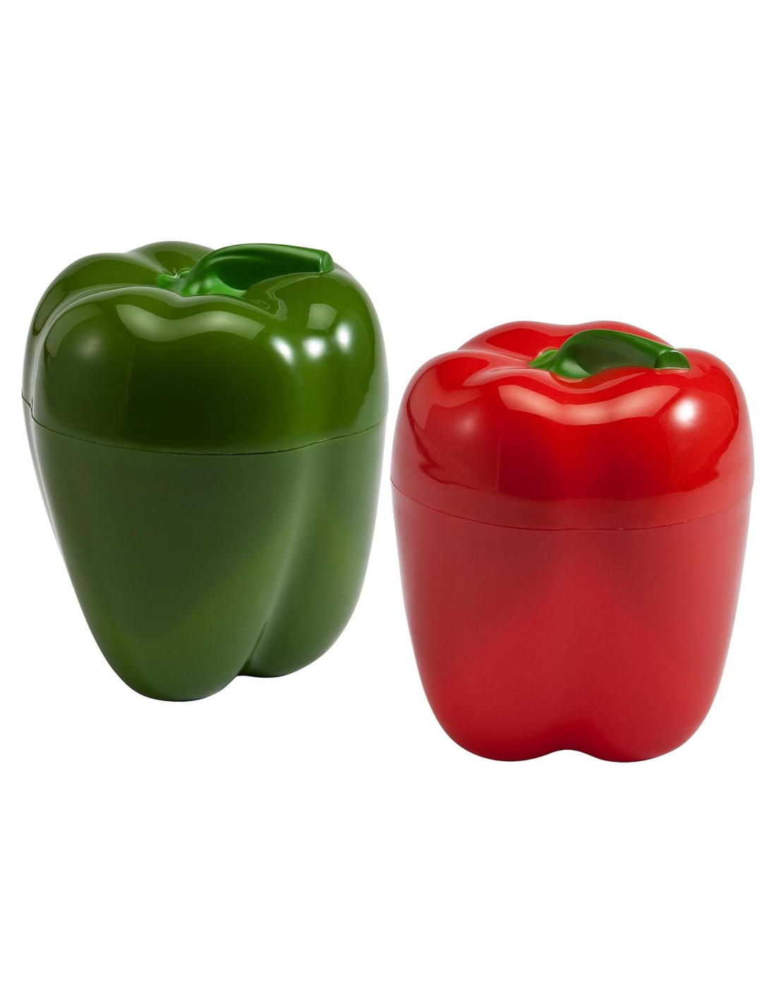 Extiende la vida útil de un pimiento cortado. Colócalo en el Conservador de Pimientos y mantén tus pimientos cortados frescos y húmedos. También es ideal para servir pimientos en rodajas al aire libre. Diseñado para parecerse a un pimiento, nunca se perderá ni se olvidará en el refrigerador. Los 2 lados se unen mediante un cierre de giro. Son libres de BPA y aptos para lavavajillas. Incluye un juego de 2 Conservadores de Pimientos.