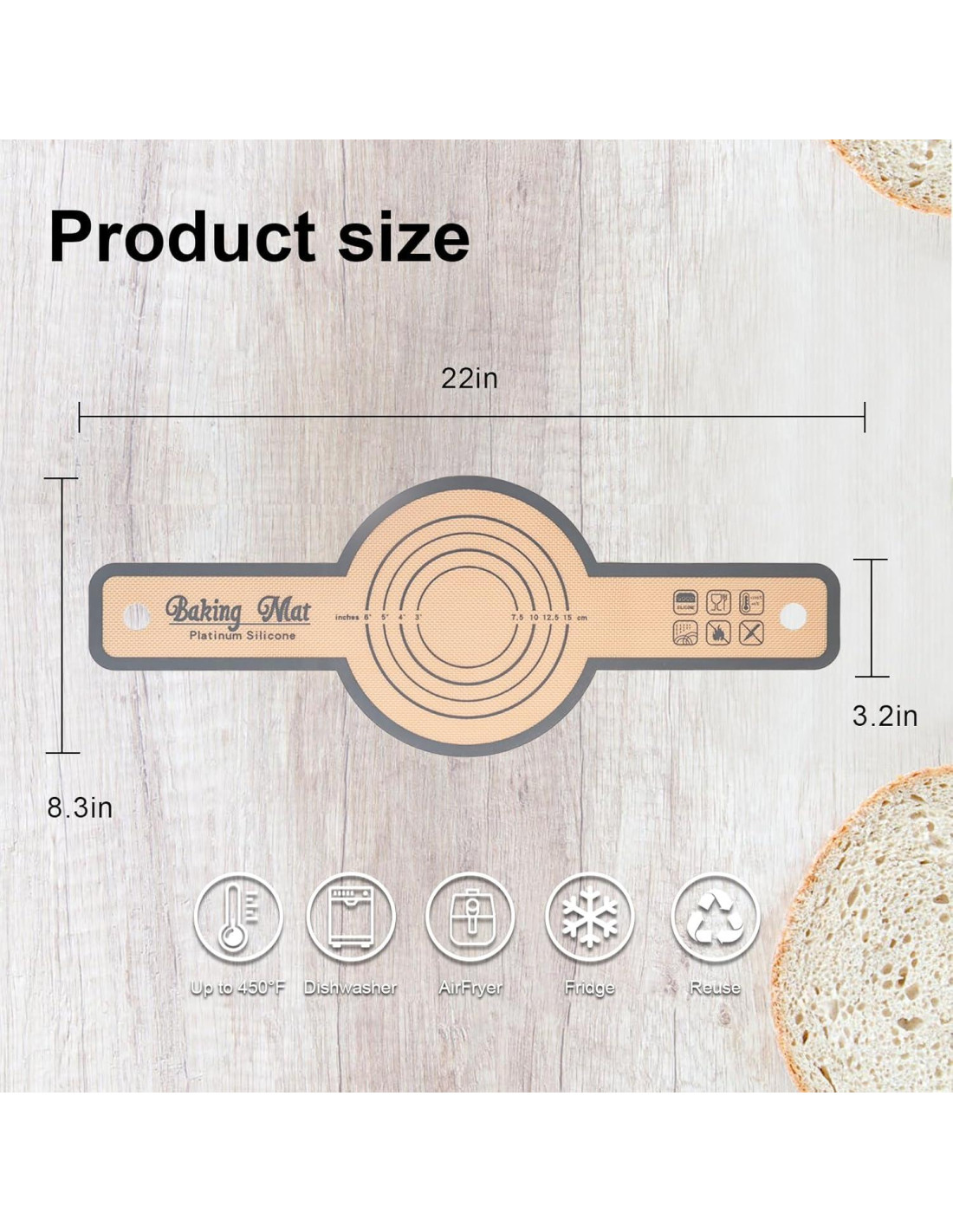 - [Resistente al Calor] El tapete de silicona proporciona una distribución uniforme del calor y promueve una cocción pareja, asegurando que la parte inferior del pan no se queme. El forro para hornear pan puede soportar temperaturas de -40F (-40C) a 500F (260C), y la bolsa de masa de -40F (-40C) a 428F (220C)