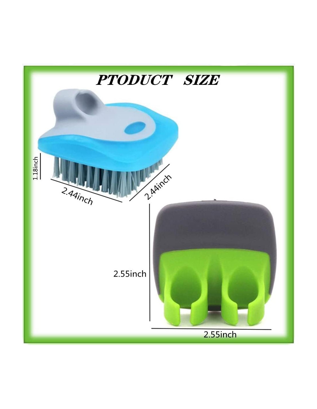 Set de 2 Piezas de Cepillo de Frutas y Verduras, Cepillo para Fregar Papas, Cepillo para Champiñones y 2 Piezas de Pelador de Frutas de Palma, Pelador de Papas de Dedo, Pelador de Verduras de Cocina, Pelador de Frutas de Mano. Especificaciones: Material: Acero inoxidable 304, materiales PP y TPR. Tamaño: Cepillo de limpieza de mano para verduras: aproximadamente 6.17 x 6.17 x 4.57 cm. Pelador de frutas: 6.48 x 6.48 x 3.56 cm. Color: como se muestra en las imágenes.