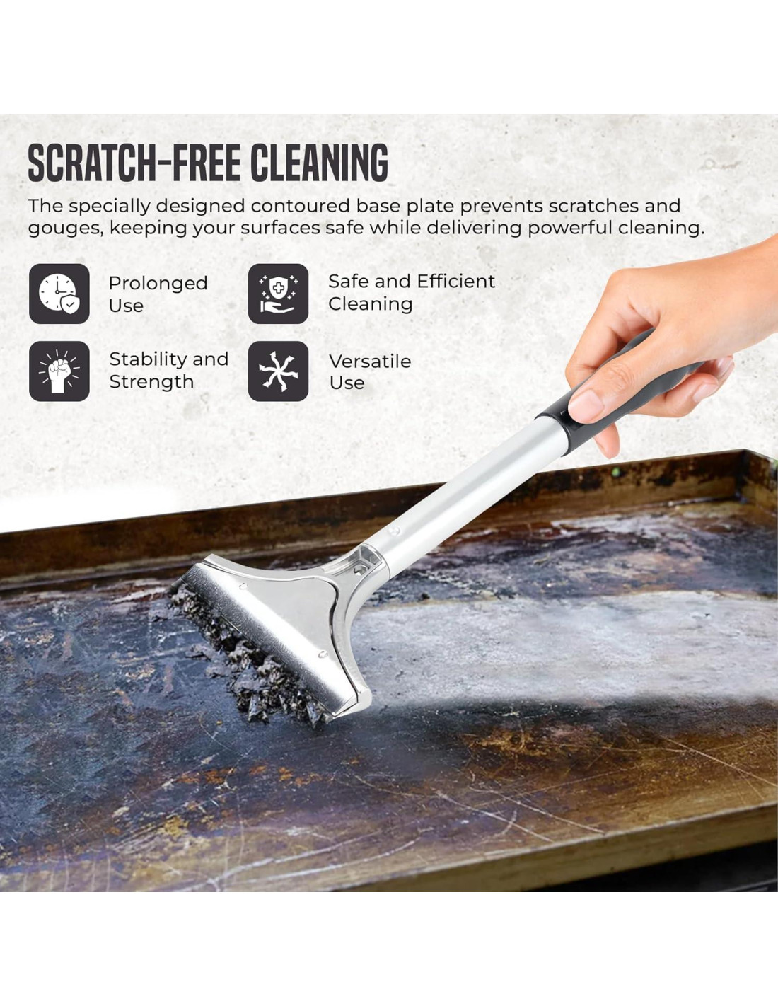 - Herramienta de Limpieza Multipropósito: Ideal para una amplia gama de tareas de limpieza, este raspador es perfecto para parrillas, planchas y superficies de acero inoxidable. Su mango de agarre suave asegura una operación cómoda y segura, convirtiéndolo en una herramienta versátil para cualquier cocina.