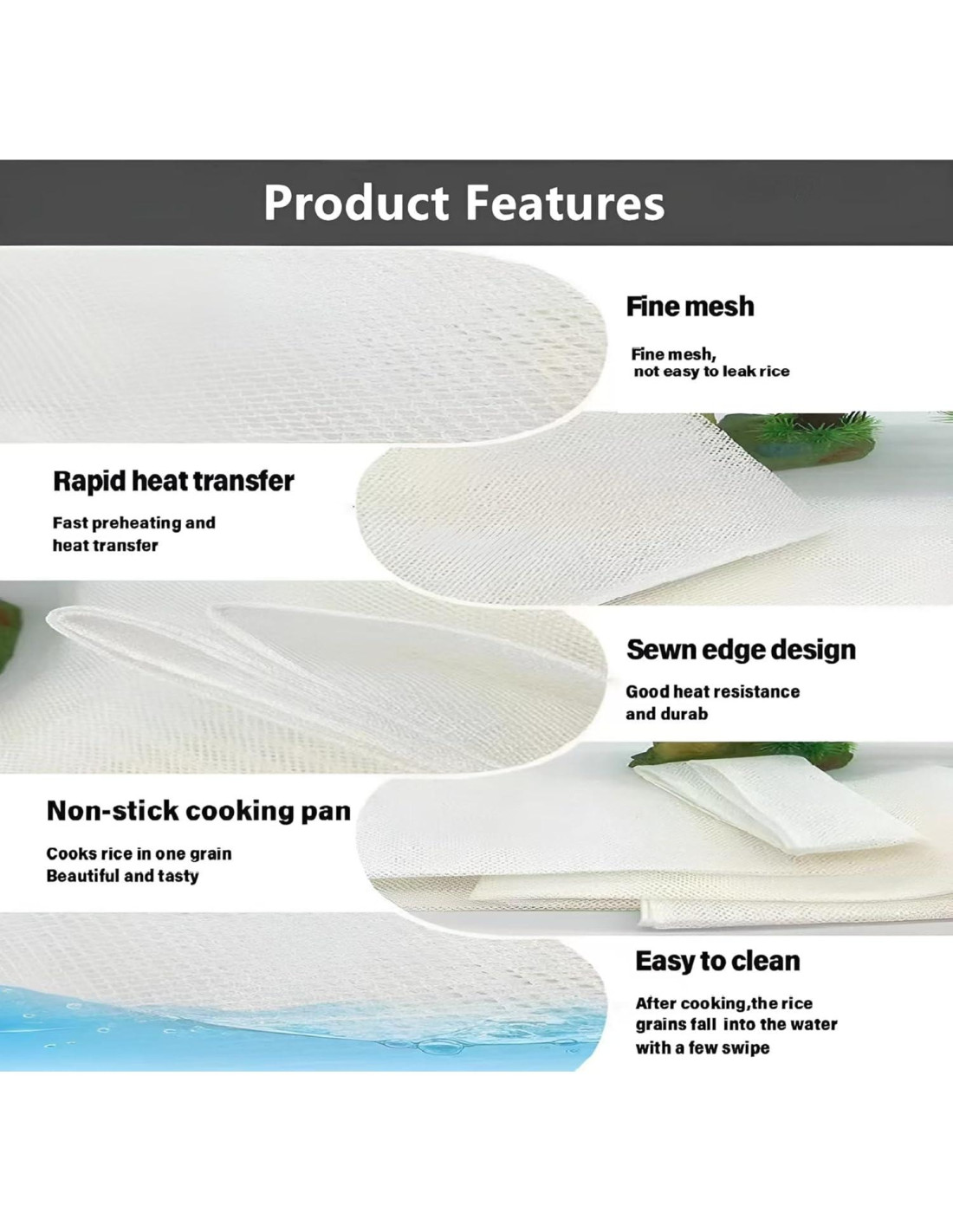 - Asistente Ambiental: Duradero y fácil de limpiar, enjuagado en 5 segundos, secar al aire o lavar a máquina, reutilizable. Usar esta red de arroz te ayudará a reducir el desperdicio en la cocina, lo que es tanto ecológico como práctico. Al usarlo por primera vez, coloca la toalla de arroz en la olla y hiérvela durante 4 minutos antes de usarla.