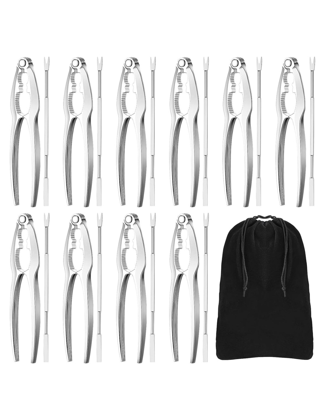 - Bolsas de almacenamiento compactas: la bolsa de almacenamiento proporcionada te permite poner juntas las herramientas para comer langosta, lo que será conveniente para ti llevar y almacenar sin ocupar demasiado espacio, mientras mantienes tu cascanueces de mariscos alejado del polvo