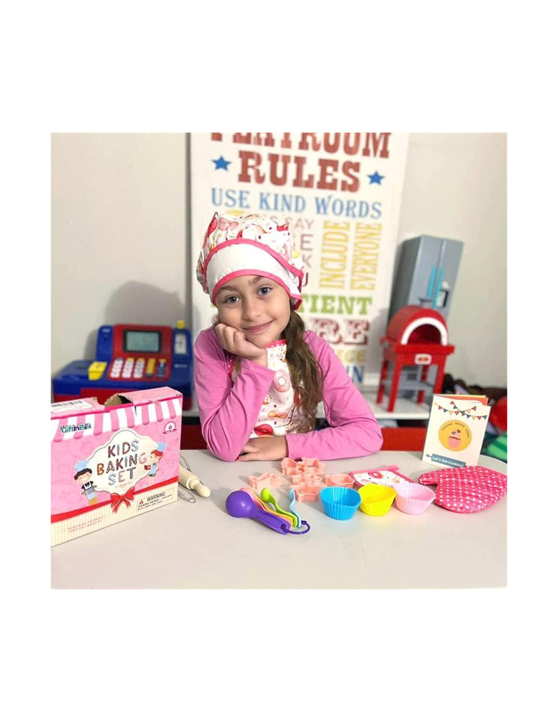 - [Conjuntos Completos de Repostería y Cocina para Niños] - GIFTINBOX 25 pcs conjunto de repostería para niñas ofrece utensilios de cocina y suministros de repostería para su pequeño chef. El conjunto incluye delantal para niños y gorro de chef, manopla de horno y alfombrilla, rodillo, espátula, batidor, cortadores de galletas, cucharas medidoras, moldes de silicona para hornear y tarjeta de recetas. Cada pieza está hecha de materiales duraderos que durarán años. ¡Dale a tu joven panadera o chef todo lo que necesita para preparar deliciosos bocadillos!