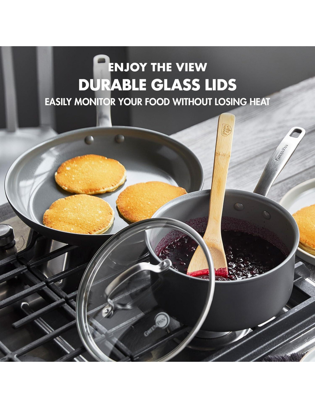 - LIBRE DE TOXINAS: El recubrimiento de cerámica no pegajosa saludable de GreenPan está libre de PFAS, PFOA, plomo y cadmio para comidas sin preocupaciones.