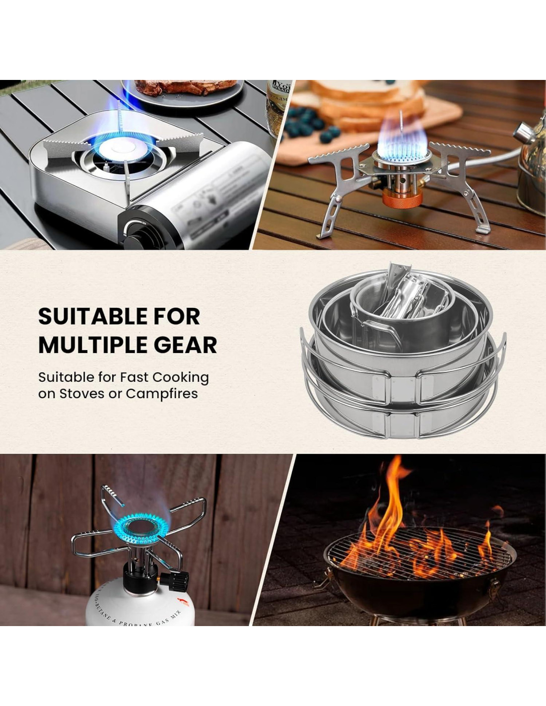 - Herramienta de mochilero que ahorra espacio: A diferencia del conjunto de ollas y sartenes tradicional para camping, nuestro kit de cocina compacto y portátil presenta tecnología de apilamiento: 14 piezas se colapsan en una unidad apilable de 5" (12.7 cm) de diámetro (70% de ahorro de espacio), lo que lo hace ideal para las necesidades de utensilios de cocina para mochileros.