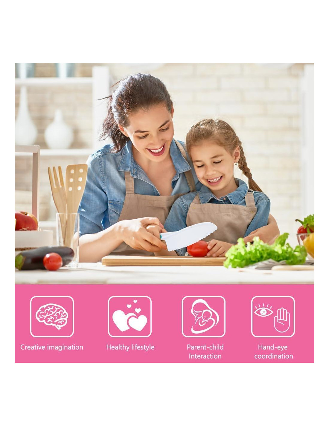 - Material Seguro: Los cuchillos de cocina para niños están hechos de material plástico de alta calidad, material libre de BPA, superficie suave y antiadherente, segura y resistente a altas temperaturas. El material de alta calidad hace que no sea fácil de romper y deformar, y duradero.