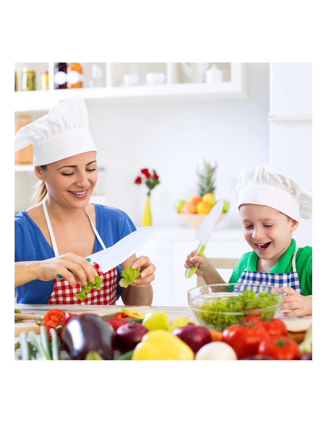 - Uso Amplio: El set de cuchillos para niños puede cortar fácilmente verduras y frutas, fácil de llevar, adecuado para llevar afuera. Puede ser utilizado en muchas ocasiones como reuniones familiares, picnics, fiestas de cumpleaños, actividades padre-hijo, etc. Los niños deben usarlo bajo la supervisión de adultos para evitar lesiones.