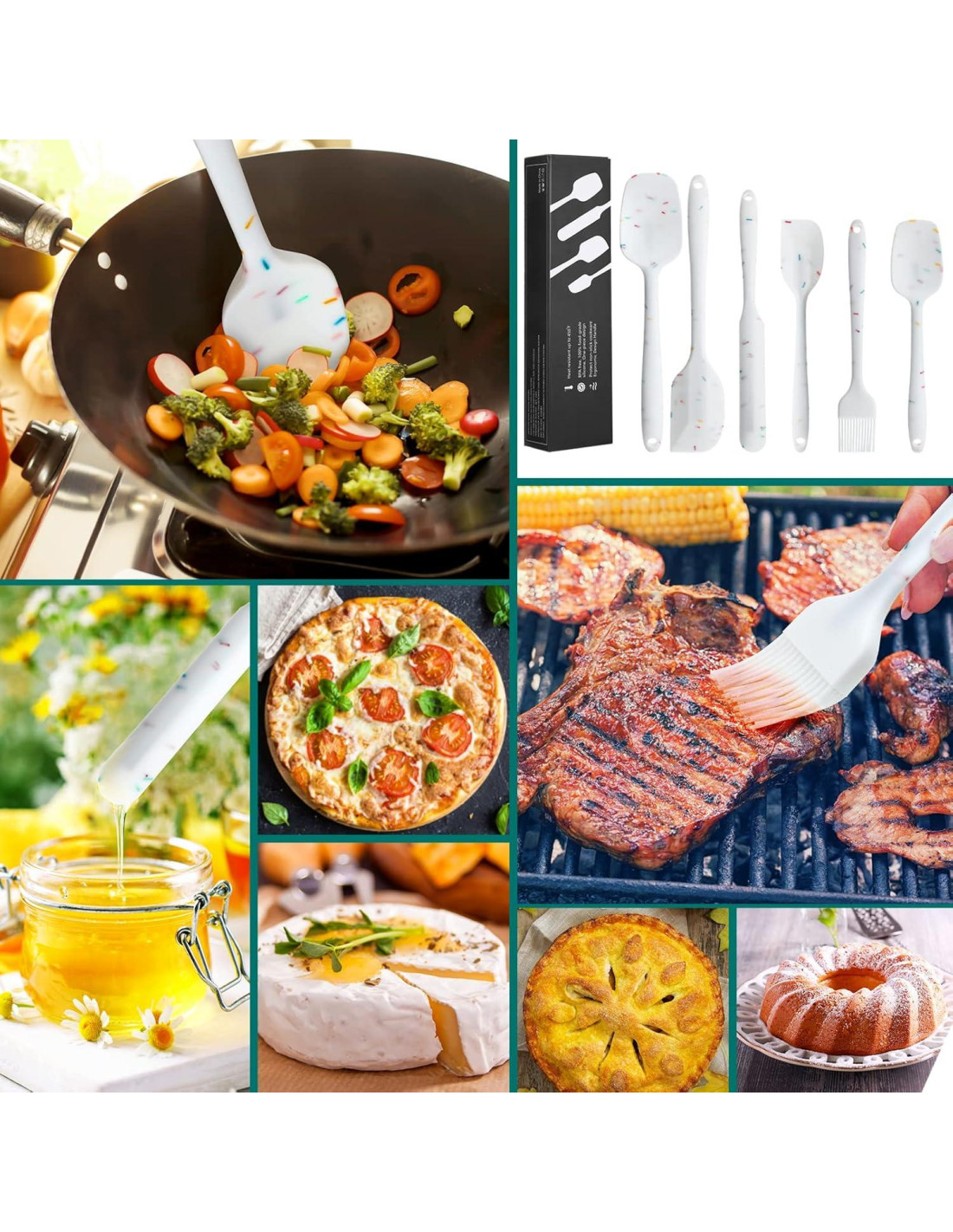 - [AMPLIA APLICACIÓN] : El juego de espátulas de silicona es adecuado para revolver, saltear y voltear una variedad de alimentos, se puede usar para mezclar deliciosas sopas y ensaladas de verduras, hacer pasteles, helados y la mayoría de los postres, que pueden esparcir la crema de manera uniforme y suave. Viene con una caja de colores en el paquete exterior, un buen regalo para entusiastas de la cocina en Navidad, Acción de Gracias, Año Nuevo, etc.