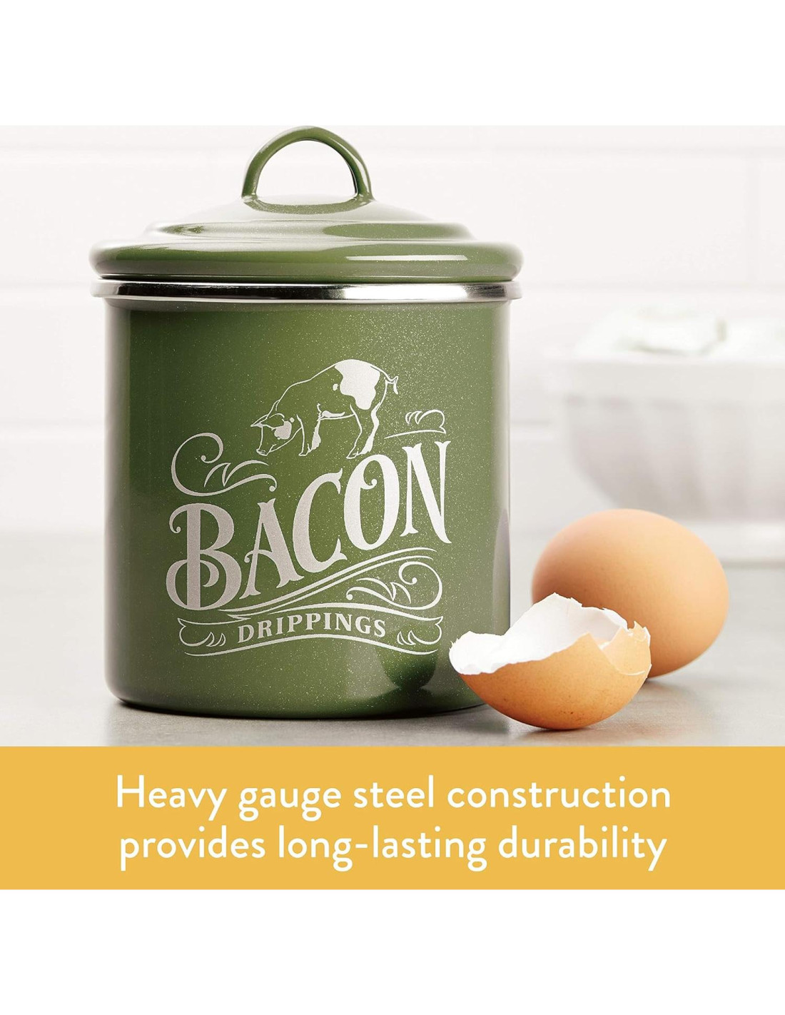 - CONTROL FÁCIL: La canasta de tocino cuenta con tapa de esmalte y mango resistente para un fácil control en la encimera (la canasta de grasa de tocino no está destinada para uso en la estufa o en el horno)