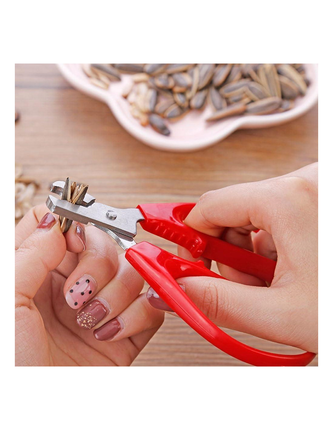 Abre fácilmente semillas de melón, semillas de girasol y nueces pequeñas con este práctico Alicate Abridor de Semillas de Melón Rojo. Este gadget de cocina especial cuenta con un diseño único que te permite pelar y abrir semillas y nueces con facilidad, convirtiéndolo en una herramienta imprescindible para los entusiastas de los bocadillos. Fabricado con materiales duraderos, este abridor de cáscaras de semillas proporciona un agarre seguro y un control preciso para un pelado eficiente. Su tamaño compacto lo hace conveniente para almacenar en tu cajón de cocina o llevarlo contigo en aventuras al aire libre. Libera todo el sabor de tus semillas y nueces favoritas con este versátil alicate pelador.