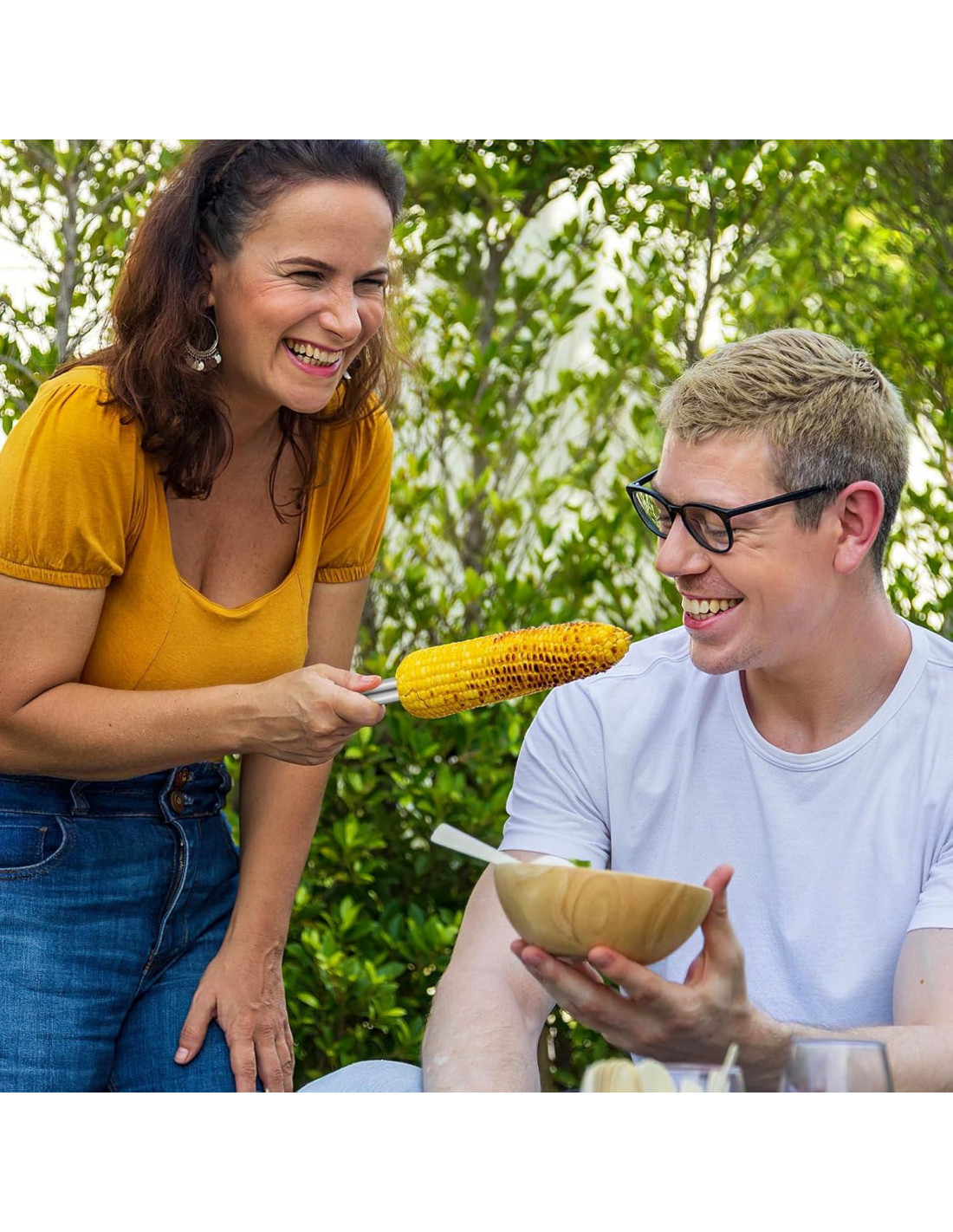 - Calidad Sobresaliente: Los tenedores de maíz están hechos de acero inoxidable de grado alimenticio, ofreciendo una solución libre de óxido para un agarre sin deslizamientos. Perfecto para disfrutar de mazorcas de maíz en cualquier entorno de cocina, reunión familiar o incluso durante tu fiesta al aire libre