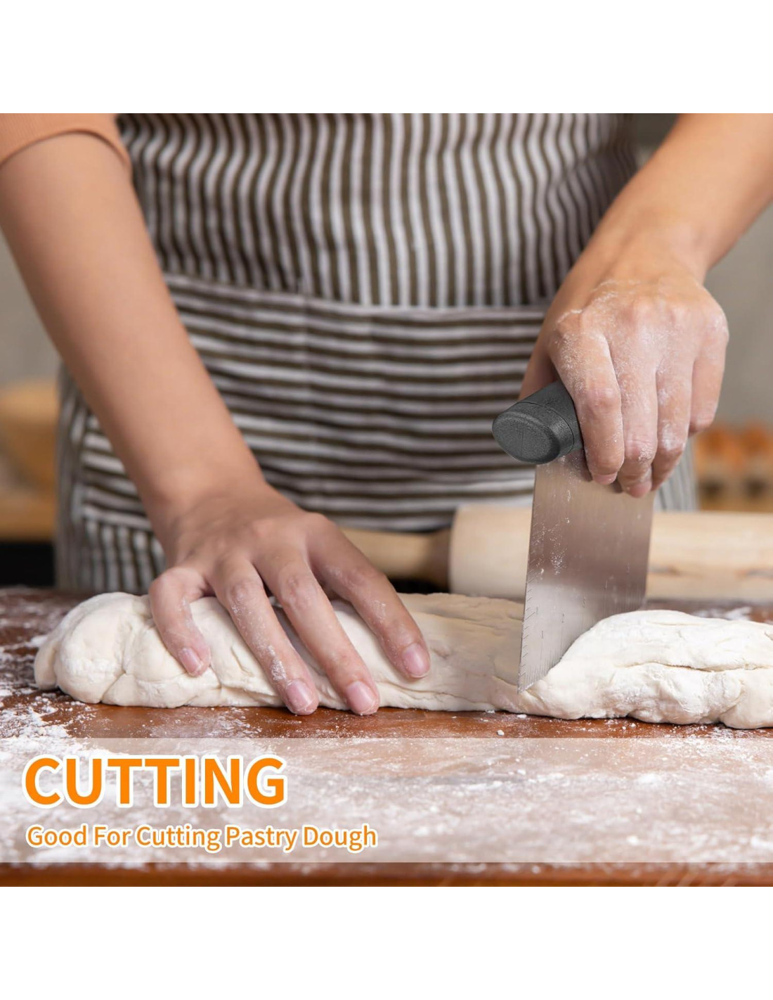 - Cortador de Masa Multiusos: El raspador de banco es un gadget perfecto para el hogar. Los utensilios de cocina versátiles no solo están diseñados para raspar masa sin esfuerzo, sino que también pueden usarse como raspador de cocina, raspador de horneado, cuchillo de masa, raspador de pasteles. O utilizado como alisador para decorar pasteles o esparcidor de masa. Es perfecto para tus esenciales de cocina.