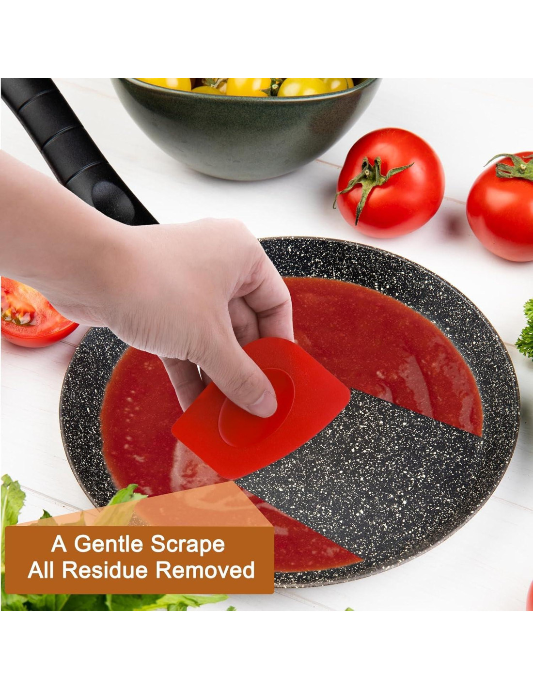 - Diseño profesional: Cada esquina de estos raspadores de sartén sin rayones tiene diferentes tamaños para que puedas acceder a cualquier área fácilmente y hacer una limpieza a fondo; las esquinas redondeadas de estos limpiadores de sartén de hierro fundido facilitan el raspado de sartenes redondeadas.