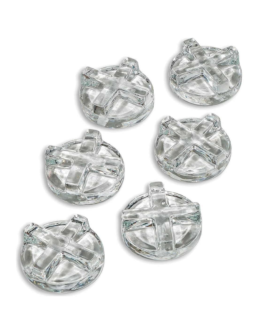 - Viene como un juego de 6 pesas de vidrio que miden 6.78 cm (2.67") de diámetro para adaptarse a frascos de boca ancha