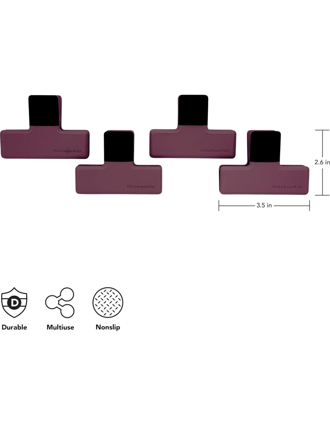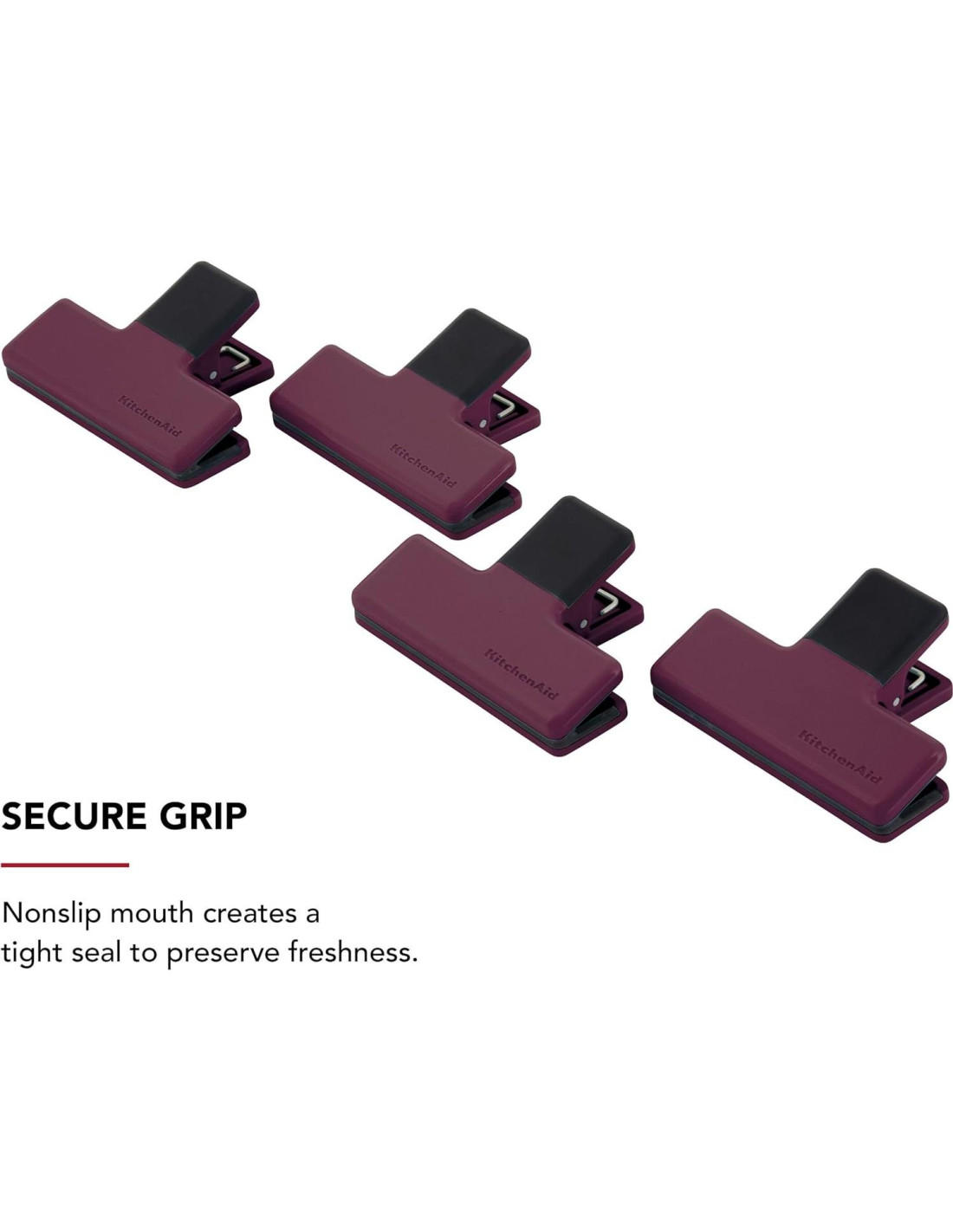 Este Juego de 4 Clips de Cocina Medianos KitchenAid es ideal para cerrar bolsas de papas fritas, snacks y alimentos congelados, o para sostener recetas. Estos clips versátiles cuentan con bocas antideslizantes que crean un sellado ajustado para preservar la frescura, y están hechos de plástico duradero que soporta el uso diario. Limpie con un paño húmedo. Garantía limitada de por vida.