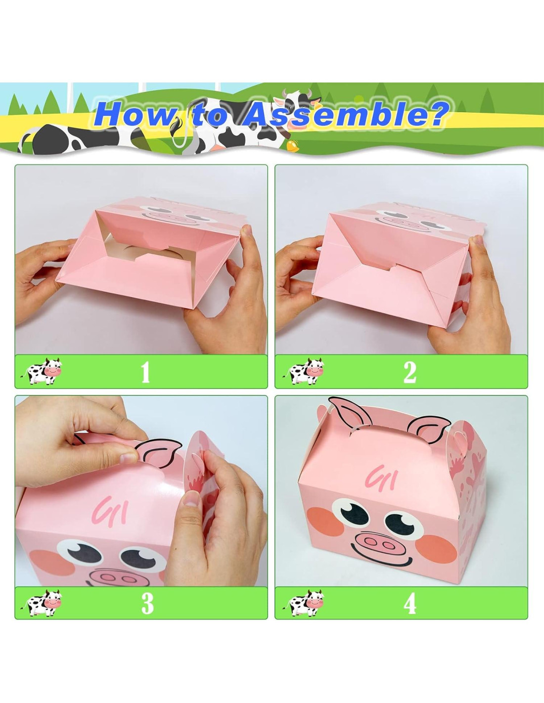 - Juego de Platos y Servilletas de Animales de Granja de 180PCS y 24PCS Cajas de Favor de Fiesta
