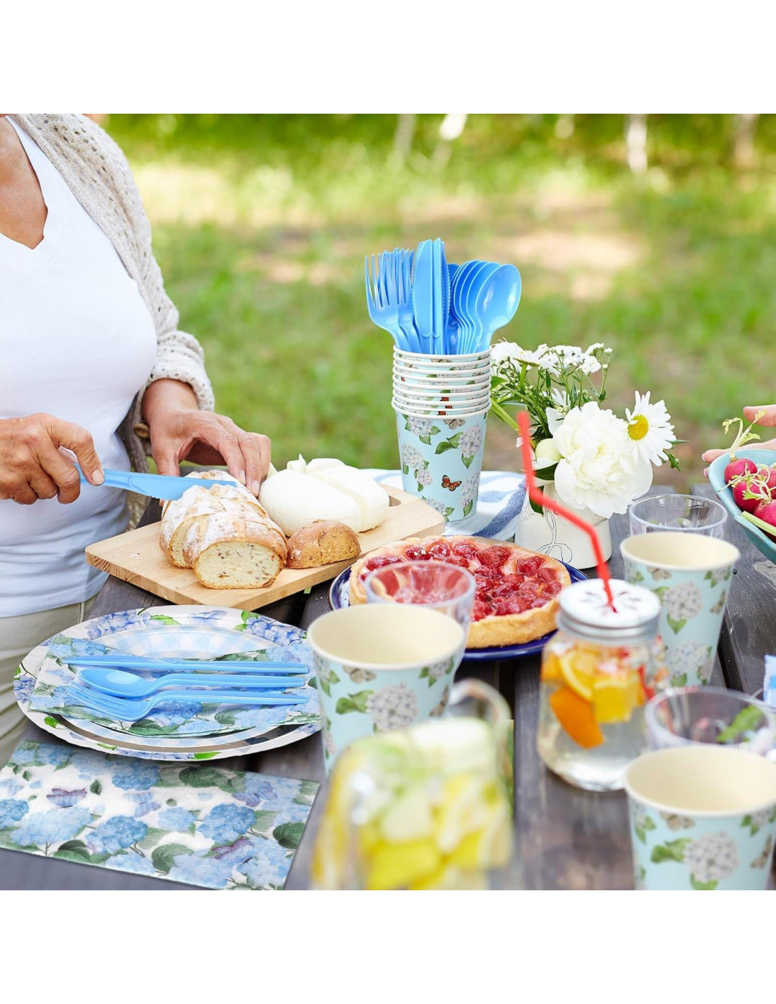 - Lo que recibirás: un juego de desechables de estilo hortensia, que incluye 50 piezas de platos de papel de 9 pulgadas (22.86 cm), 50 piezas de platos de papel de 7 pulgadas (17.78 cm), 50 piezas de tazas de papel de 9 oz (266 ml), 50 piezas de cucharas, 50 piezas de cuchillos, 50 piezas de tenedores y 100 servilletas de papel; Estas cantidades son suficientes para que organices una maravillosa fiesta