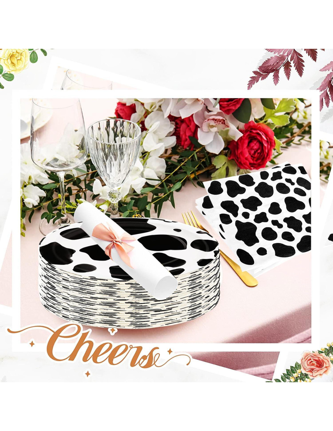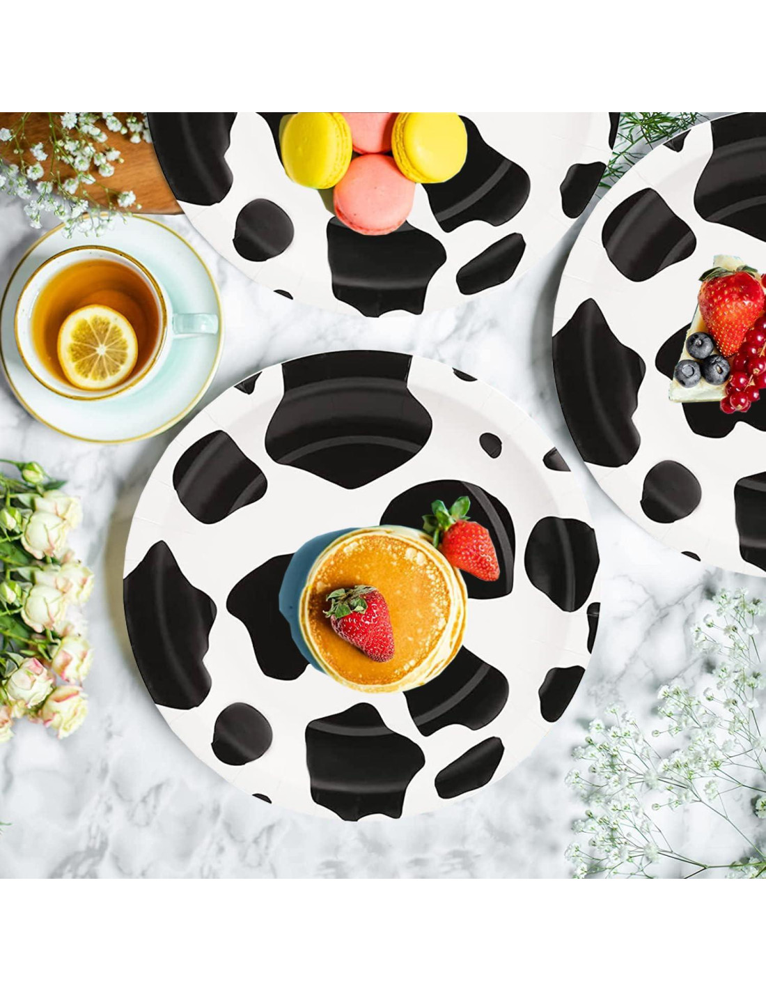 - SIRVE A 40 INVITADOS: Este set de suministros para fiesta de cumpleaños con diseño de vaca tiene todo lo que necesitas para 40 invitados, incluye 40pcs platos de postre de 7'', 40pcs servilletas con diseño de vaca. Perfectas decoraciones para fiesta de cumpleaños de vaca, el negro y blanco hacen que nuestros platos de papel sean más elegantes, el blanco hace que nuestros platos de papel brillen.
