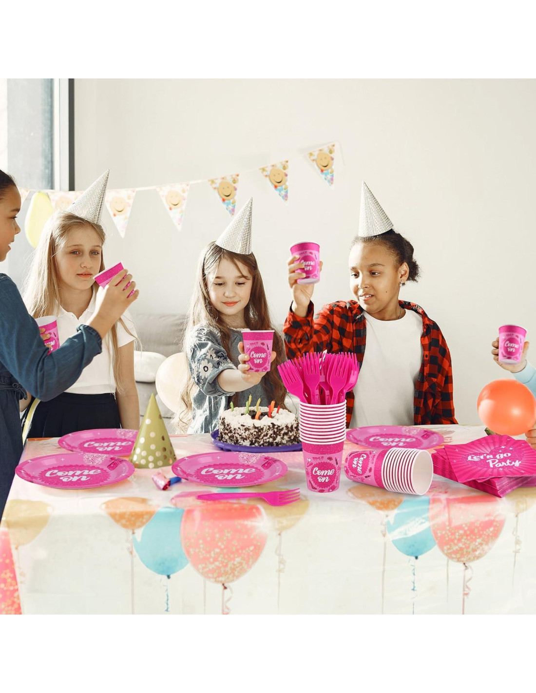 - Material premium: todos nuestros suministros para fiesta de cumpleaños en rosa fuerte están hechos de papel y plástico de calidad, duraderos y seguros; las servilletas son de buena calidad, suaves y no fáciles de romper, y los tenedores también son no tóxicos e inodoros, por lo que puedes usar la vajilla con confianza