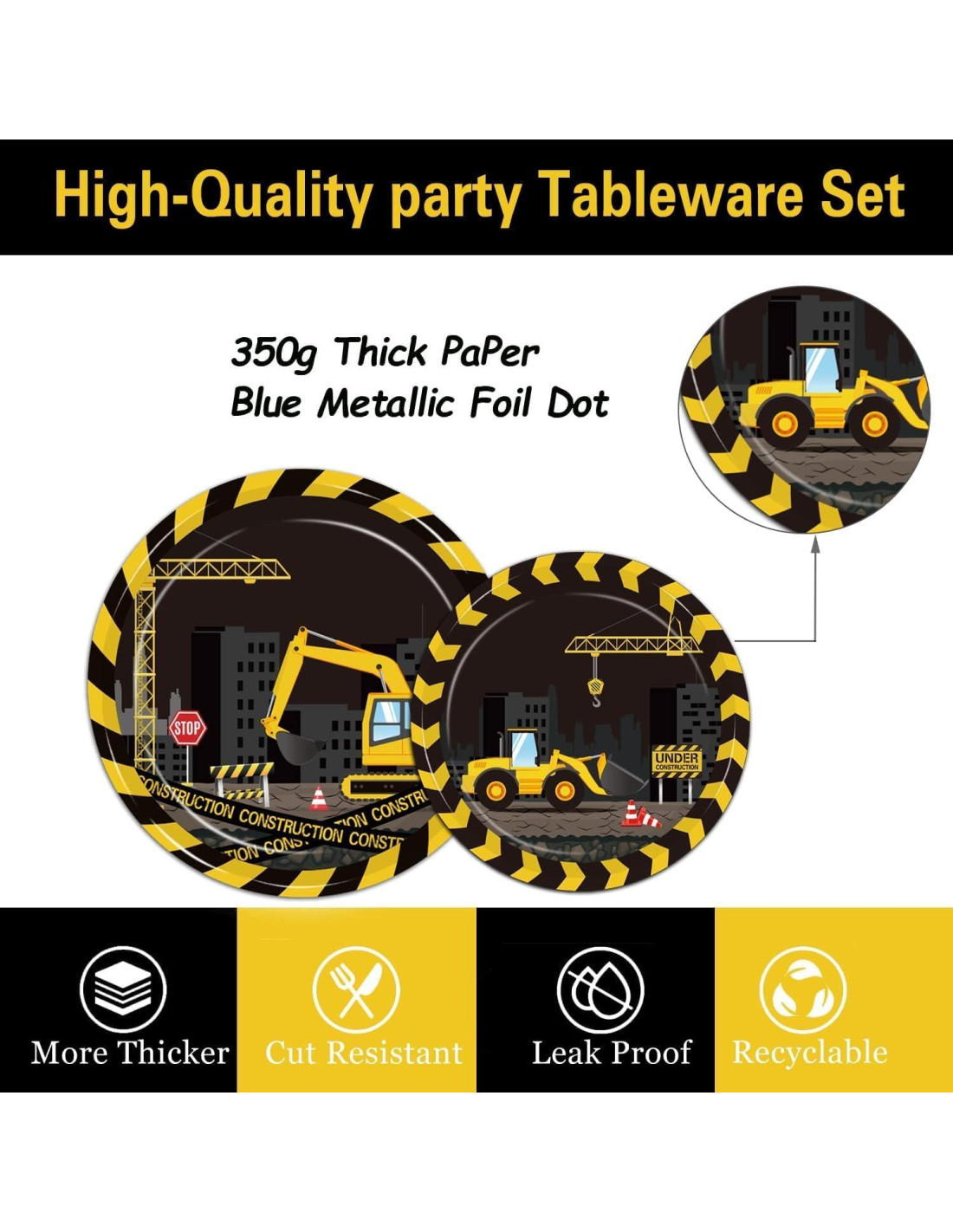 - [Amplia Aplicación] : Estos kits de vajilla para fiesta de construcción pueden servir a 24 invitados, ofreciendo una cantidad suficiente para una celebración típica de temática de construcción, particularmente para los fanáticos de los camiones volquete de construcción. Se armonizan perfectamente con otras decoraciones de fiesta de construcción, haciéndolos adecuados para una amplia gama de ocasiones, incluyendo fiestas de cumpleaños temáticas de camiones para niños, fiestas de baby shower, temas de trabajadores de construcción para niños y niñas, picnics, barbacoas, y más.