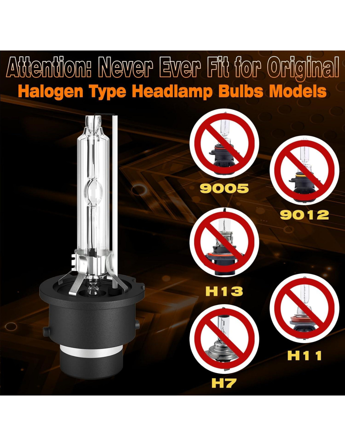 - Por favor atención: el mismo modelo de coche puede estar equipado con diferentes tipos de bombillas de faro. Incluso si el sistema muestra 'Compatible', puede ser inexacto. Por favor confirme el modelo de su bombilla original que está marcado en el cuerpo de la bombilla antes de comprar. Nuestra lámpara es una lámpara de xenón. Nuestras bombillas son solo adecuadas para reemplazar faros xenón HID y no para ensamblajes de faros halógenos/LED.
