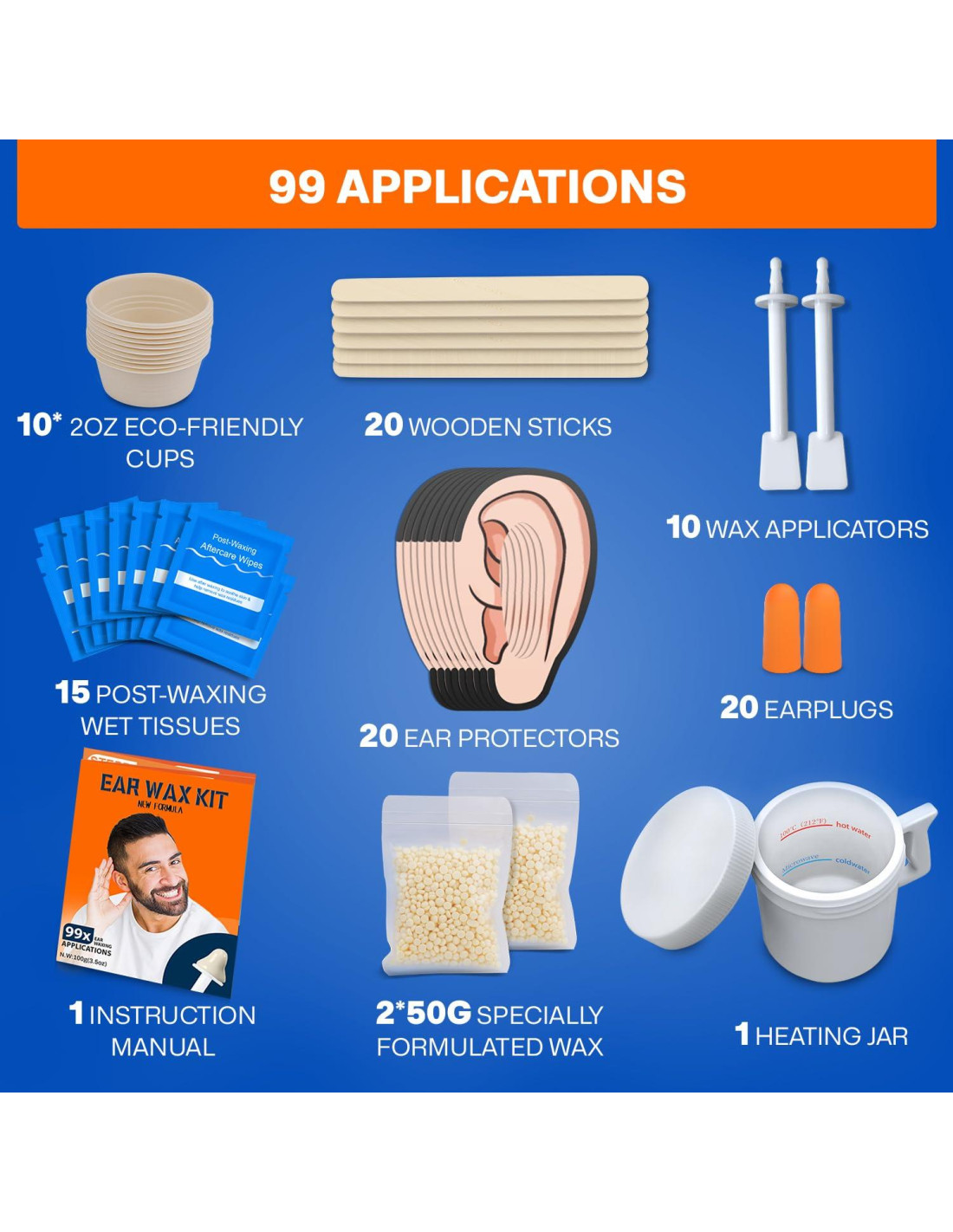 - KIT DE CERA DE CUIDADO TODO EN UNO: Este conjunto completo incluye 30 aplicadores, 2x50g de cera de larga duración y 15 toallitas calmantes para una eliminación de vello suave y sin irritaciones. Los 20 palitos de madera versátiles funcionan en oídos, cejas, labios, cara y axilas, mientras que los 20 protectores de oídos protegen el vello facial. Incluye 10 tazas ecológicas de 2oz y una olla de calentamiento de precisión para una consistencia perfecta de la cera. Los tapones para oídos multifuncionales bloquean los desechos de cera y reducen el ruido para un mejor sueño. Con instrucciones fáciles de seguir, logra un cuidado de calidad de salón en casa - ¡perfecto para hombres y mujeres!