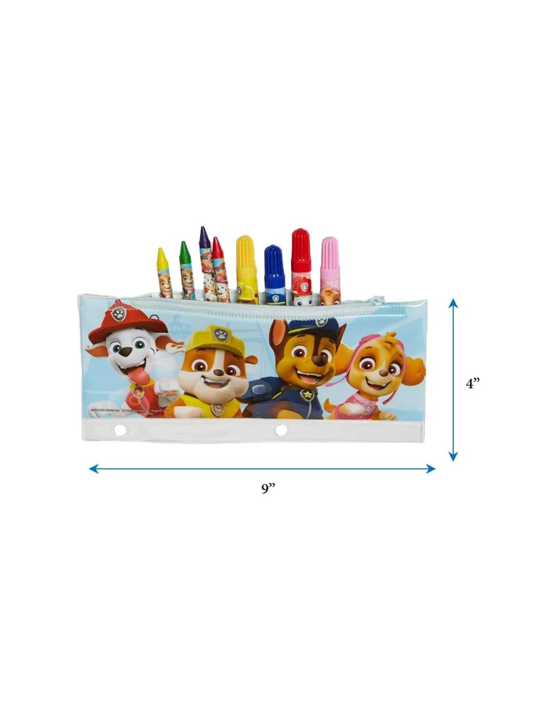 - INCLUYE UN ESTUCHE PARA LÁPICES DE PAW PATROL - Incluye un estuche con cremallera con personajes de Paw Patrol en la parte frontal, con agujeros para almacenar en una carpeta. Organiza los suministros incluidos y se ajusta perfectamente en escritorios y mochilas.