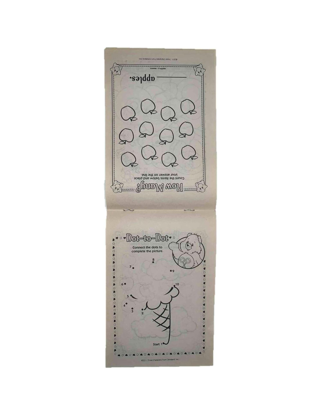 - Las actividades incluyen colorear, conectar los puntos, tres en raya, emparejar, dibujar, identificación, contar, colorear por números y detectar diferencias con los osos de Hora de Dormir, Deseo, Alegría, Cumpleaños, Corazón Tierno, Buena Suerte, Gruñón, Amoroso, Amigo, Diversión, Compartir, Feliz, Campeón, Tímido y Armonía.