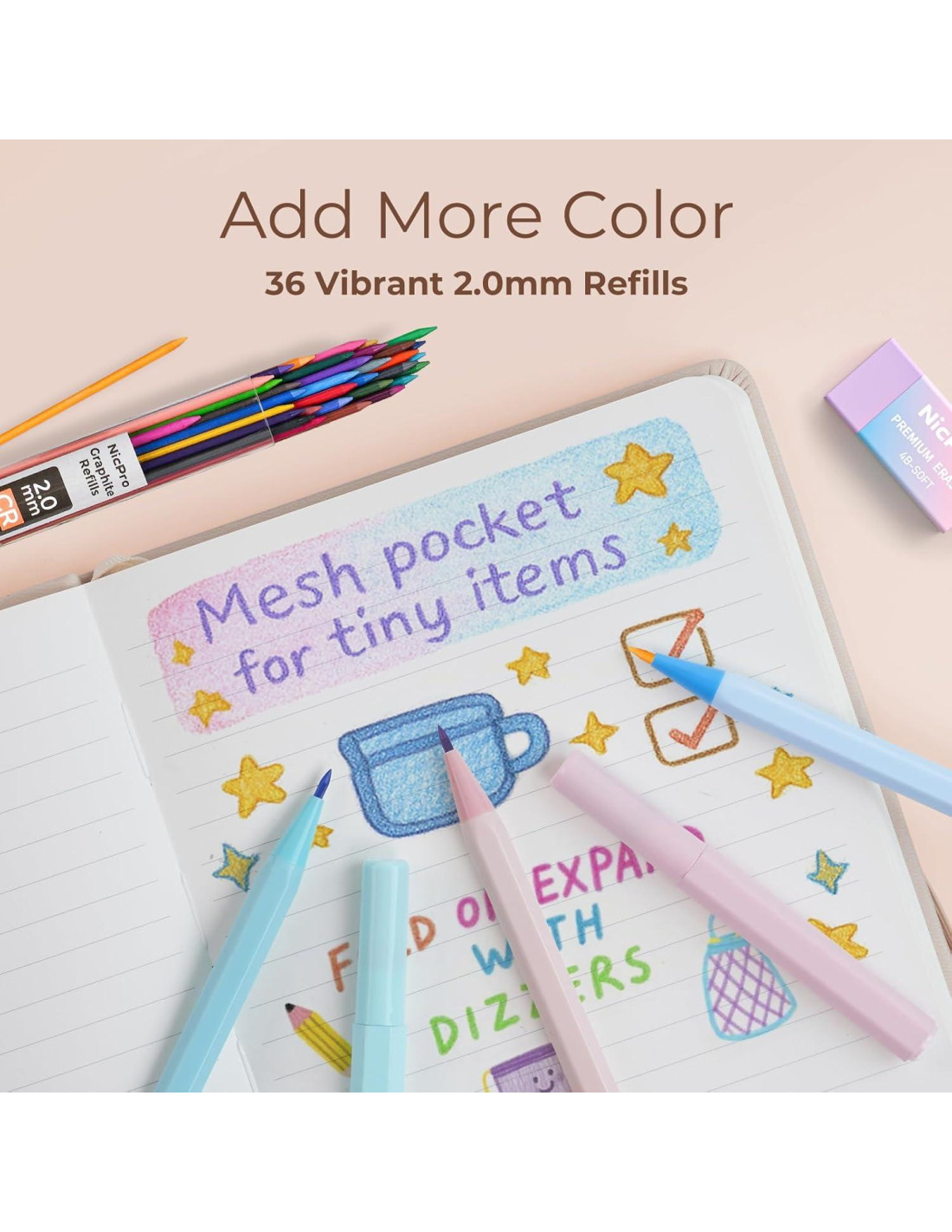 - Recarga de Mina Premium para Escritura y Proyectos Creativos: Este set incluye minas HB de alta calidad en 0.5mm, 0.7mm y 0.9mm, y 2.0mm (HB y 2B), ofreciendo una escritura suave y resistente a roturas cada vez. Además, una recarga de mina de 2.0mm de 36 colores transforma tu lápiz en una herramienta de dibujo vibrante, perfecta para garabatear, esbozar, tomar notas o añadir color a planificadores y proyectos escolares.