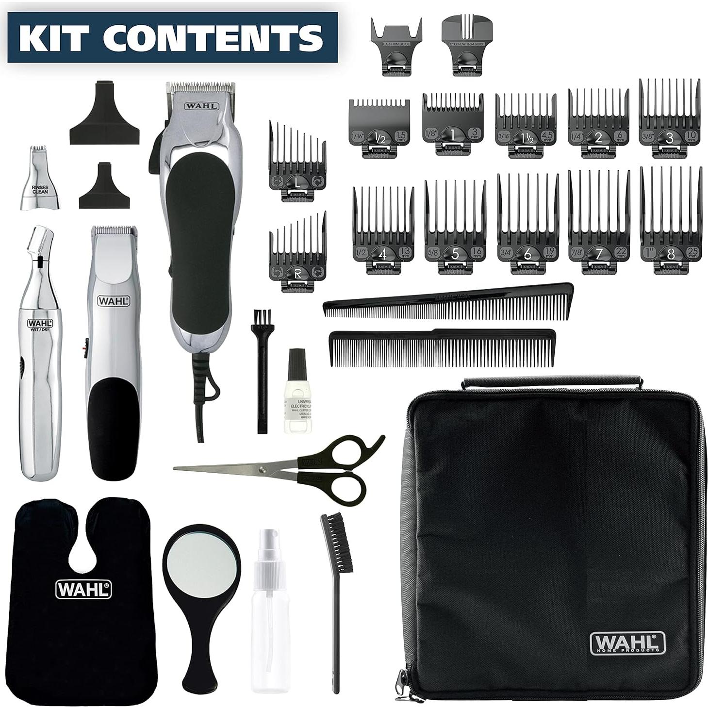 Muy buen paquete de artículos. Muy completo. Las carcasas de plástico de las máquinas de cortar no son muy resistentes, se romperán con el uso, recuerdo que mi papá tenía una máquina de cortar Wahl (mi mamá todavía tiene la máquina en un gabinete y sigue funcionando) hace 40 años y el plástico del que está hecha es de calidad. Esto es como un juguete barato de niño en calidad de plástico. Dicho esto... funciona genial, tan bien como lo hacía la antigua de mi papá, solo desearía que el plástico f