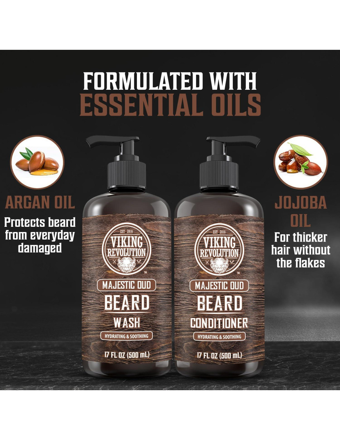 - Espuma: Nuestro set de lavado de barba limpia y nutre profundamente. Con solo un poco de champú para barba en tu mano, añade agua, masajea en tu barba y la rica espuma hace el resto.