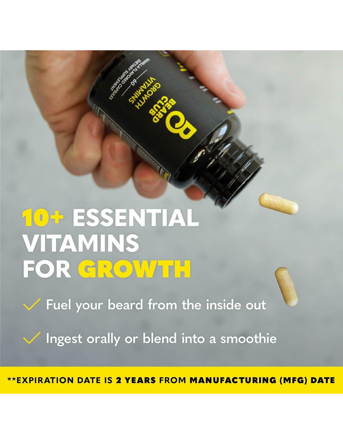 - Vitaminas para el Crecimiento de Barba - Más de 20 vitaminas esenciales como Biotina, Vitamina B12 y MSM formuladas para ayudar a apoyar el crecimiento saludable del vello facial y ayudar en la producción saludable de Testosterona