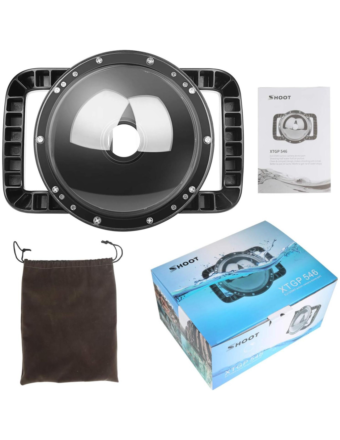 - Lente de cúpula de alta transparencia que le ofrece alta visibilidad para capturar imágenes vívidas 50/50 por encima y por debajo del agua simultáneamente