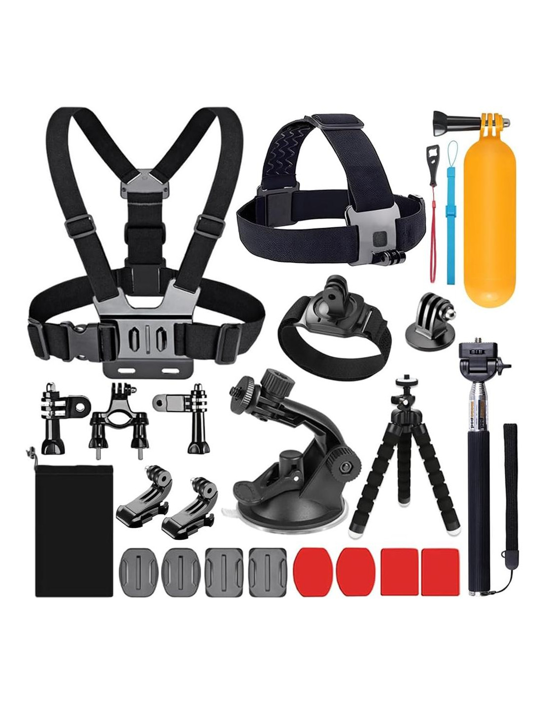 - El paquete de accesorios para cámara de acción definitivo contiene los elementos esenciales que necesitas para tomar grandes fotos y videos. El monopod para selfies te permite capturar ángulos interesantes, incluyendo por encima de las cabezas de las personas en conciertos o eventos deportivos, o filmarte fácilmente.