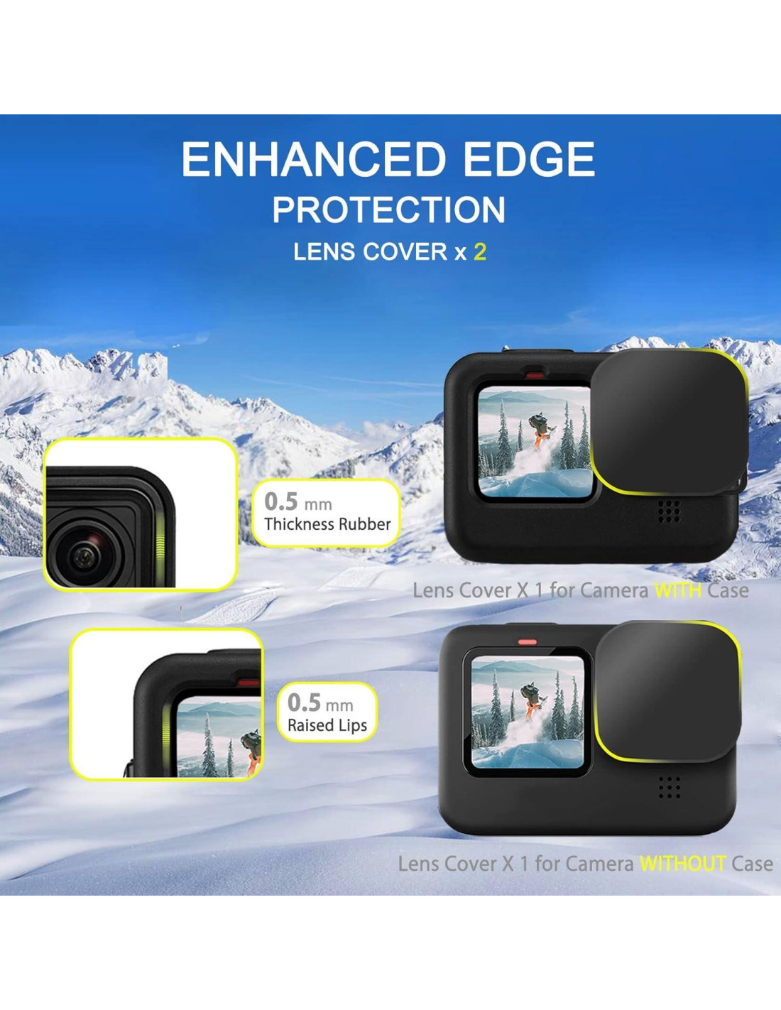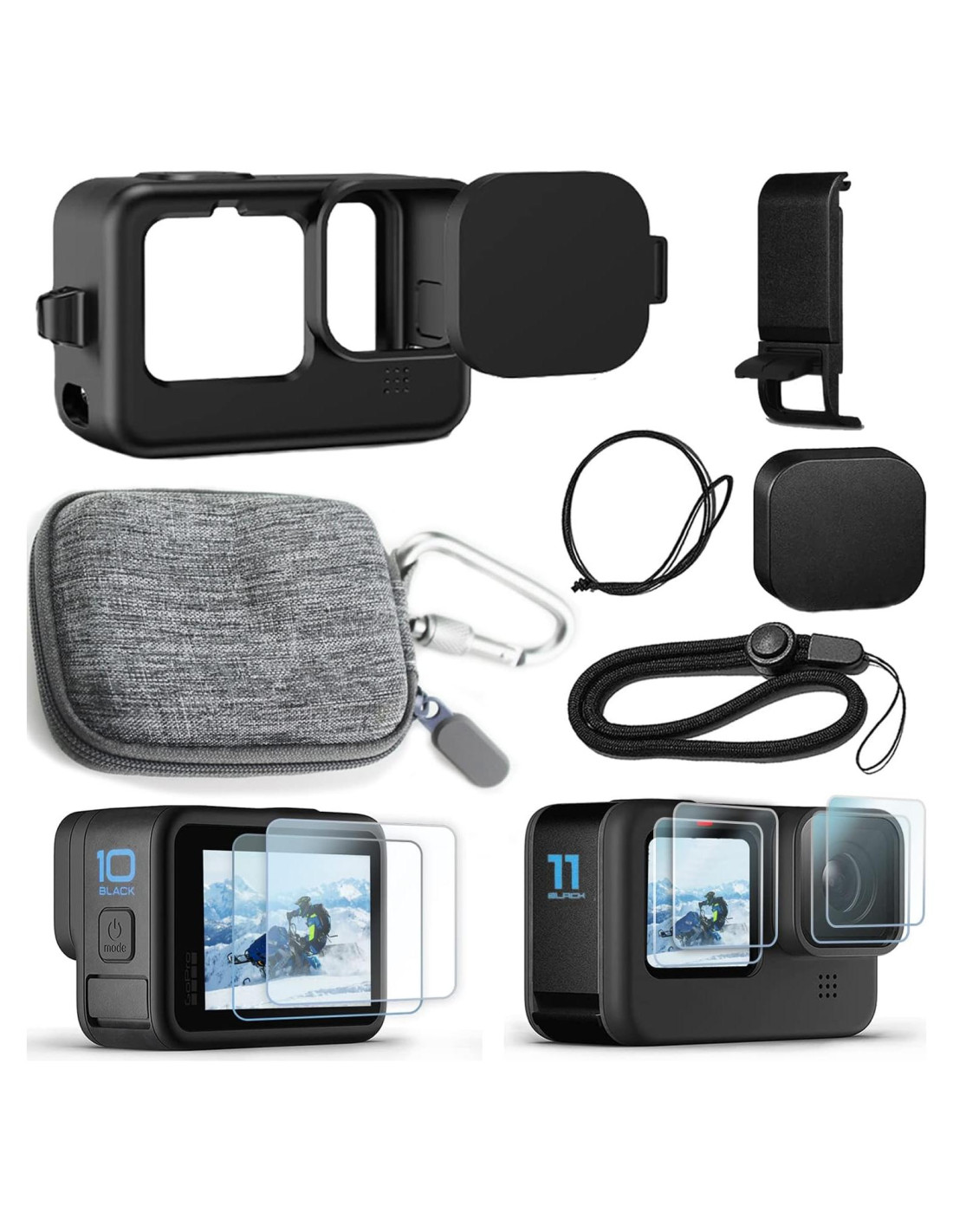 - Diseño Profesional: El Kit de Accesorios OKFUN está especialmente diseñado para la cámara de acción Go Pro Hero 12/Hero 11/Hero 10/Hero 9 negro. La funda de transporte impermeable, el film templado, la funda de silicona, la tapa de lado de batería (puerta lateral), tapa de lente en el Kit de Accesorios de Cámara son perfectamente compatibles con Go Pro Hero 12/Hero 11/Hero 10/Hero 9 Negro.