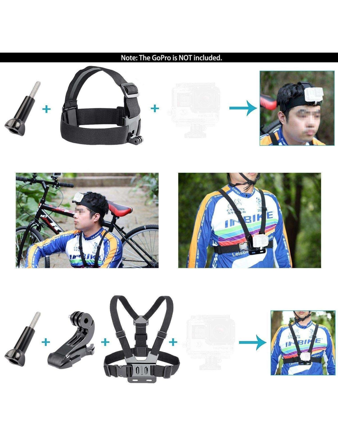 - Monturas de Correa: la correa de muñeca es rotatable en 360 grados, con un tornillo que puede fijar tu cámara de acción en la muñeca. El ángulo se puede ajustar libremente; las correas de pecho y casco te permiten adjuntar la cámara a tu cuerpo o cabeza, para que puedas concentrarte en senderismo/ciclismo