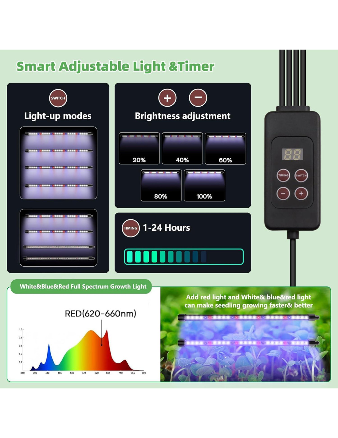 - Luz de Crecimiento Avanzada con Temporizador de 1-24H: Equipado con 56 perlas LED de alta eficiencia por bandeja, simulando la luz solar natural para promover un crecimiento más rápido y saludable de las plántulas. El temporizador ajustable de 1-24 horas permite un control preciso sobre la duración de la iluminación, adaptándose a varias etapas de las plantas.