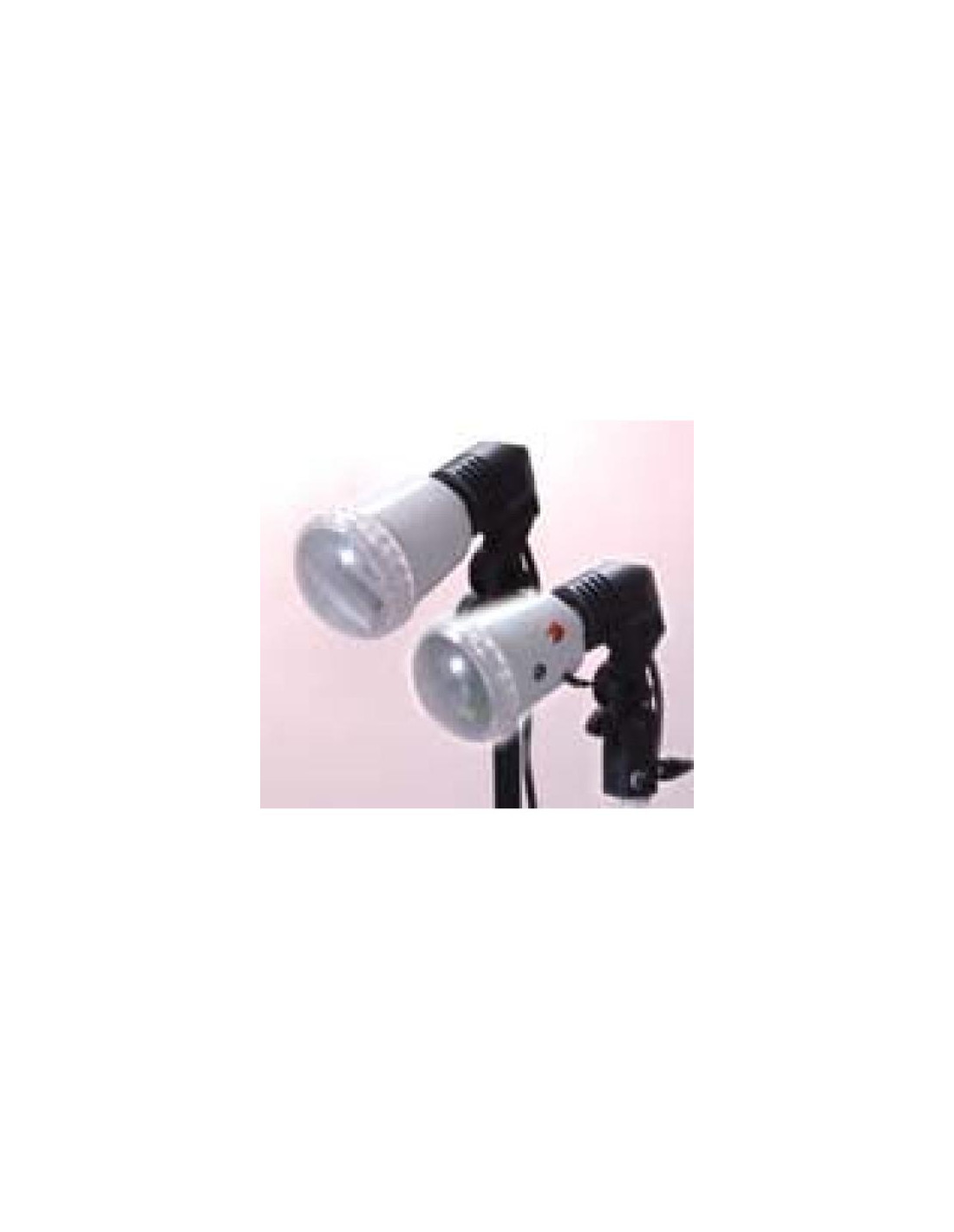 También puedes activarlo con el flash de tu cámara. Este conjunto se puede activar mediante conexión de sincronización por pc, infrarrojos o disparador de radio. Proporcionamos un cable de sincronización de 3.05 m. Si tu cámara no tiene una salida de sincronización por PC, vendemos el Adaptador de Sincronización por PC como opción. Suministramos 2 paraguas de 81.28 cm y soportes resistentes de 2.13 m. Tiene dos luces: la luz principal con paraguas plateado para dar el contraste necesario; la luz de relleno con un paraguas blanco translúcido para llenar la sombra y darte la relación de iluminación que deseas. Este es un conjunto completo de estroboscopios/flash para un pequeño estudio en casa.