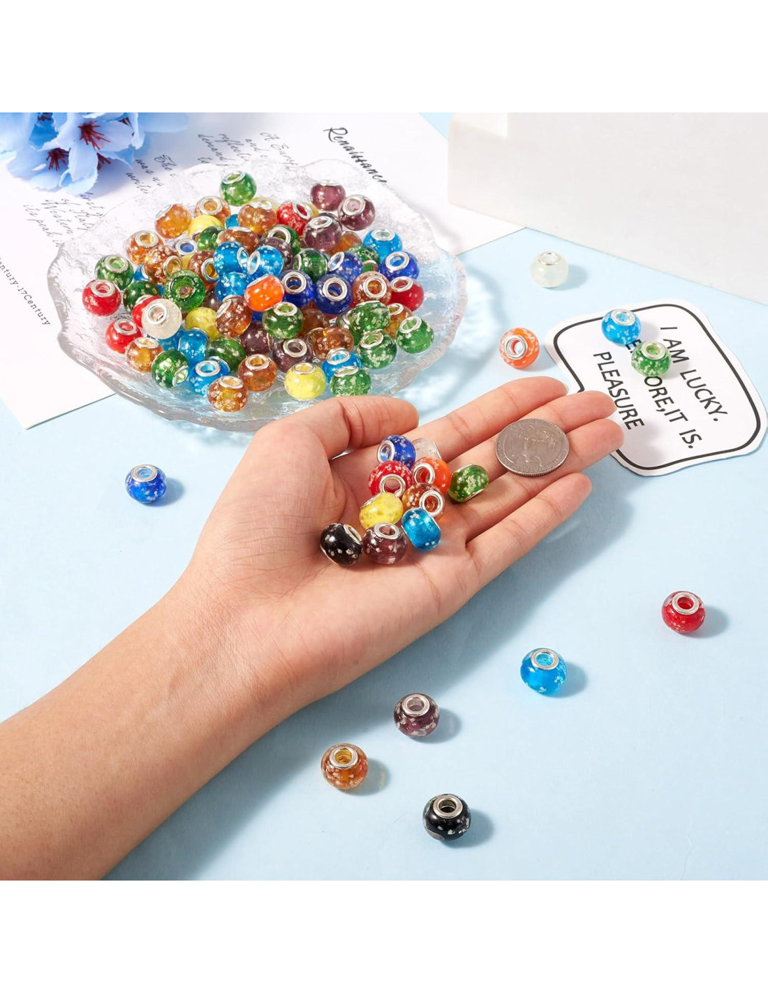- [Paquete Incluido] : Recibirás 100 cuentas europeas---Tamaño: aproximadamente 14mm de diámetro, 9~10mm de grosor, agujero: 5mm.