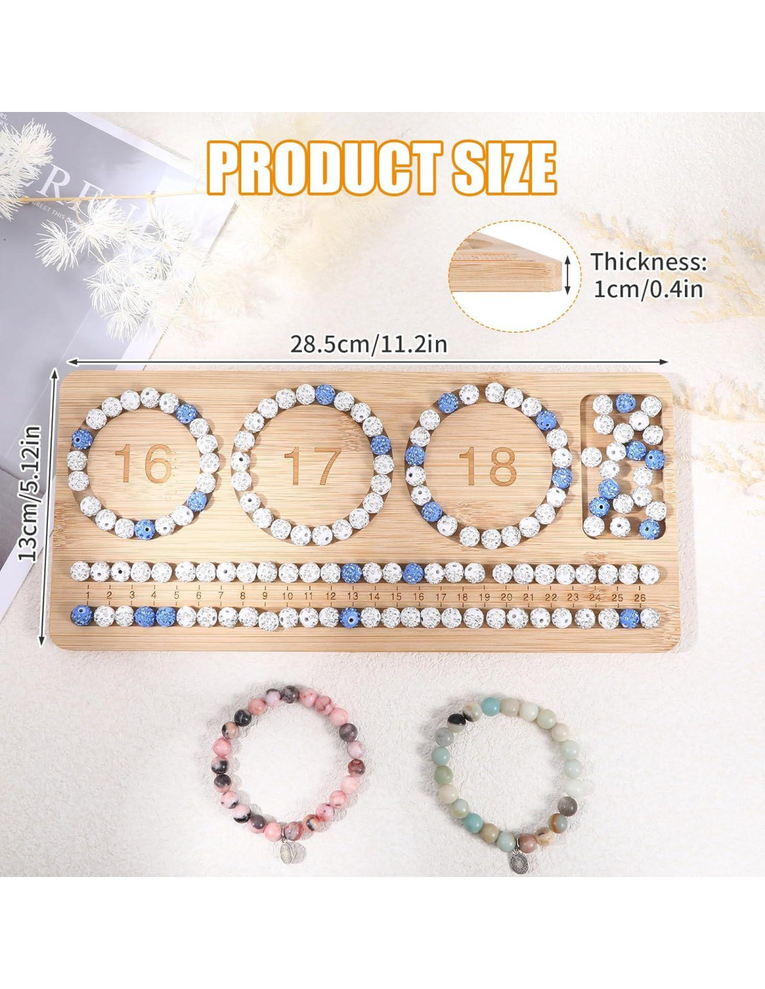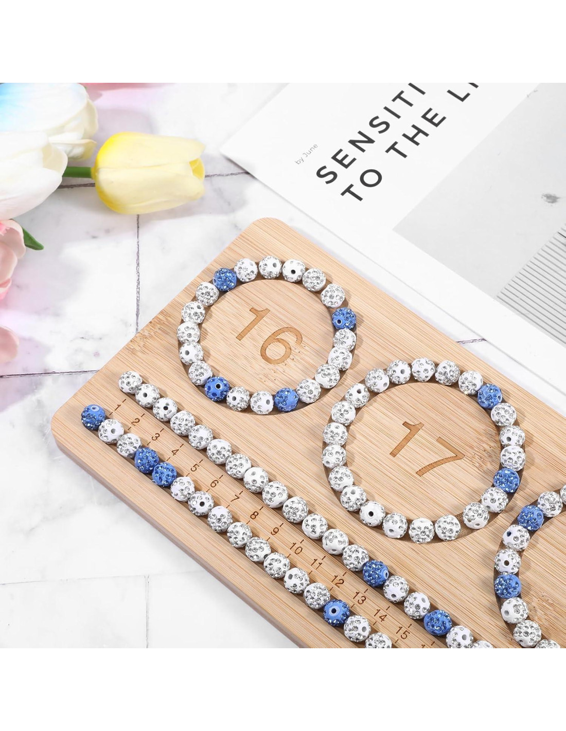 - Tablero de cuentas versátil: La bandeja de cuentas cuenta con 3 ranuras circulares que van de 16cm a 18cm y 2 ranuras de enhebrado recto, ayudándote a diseñar y dimensionar fácilmente pulseras, tobilleras y otras piezas de joyería con cuentas.