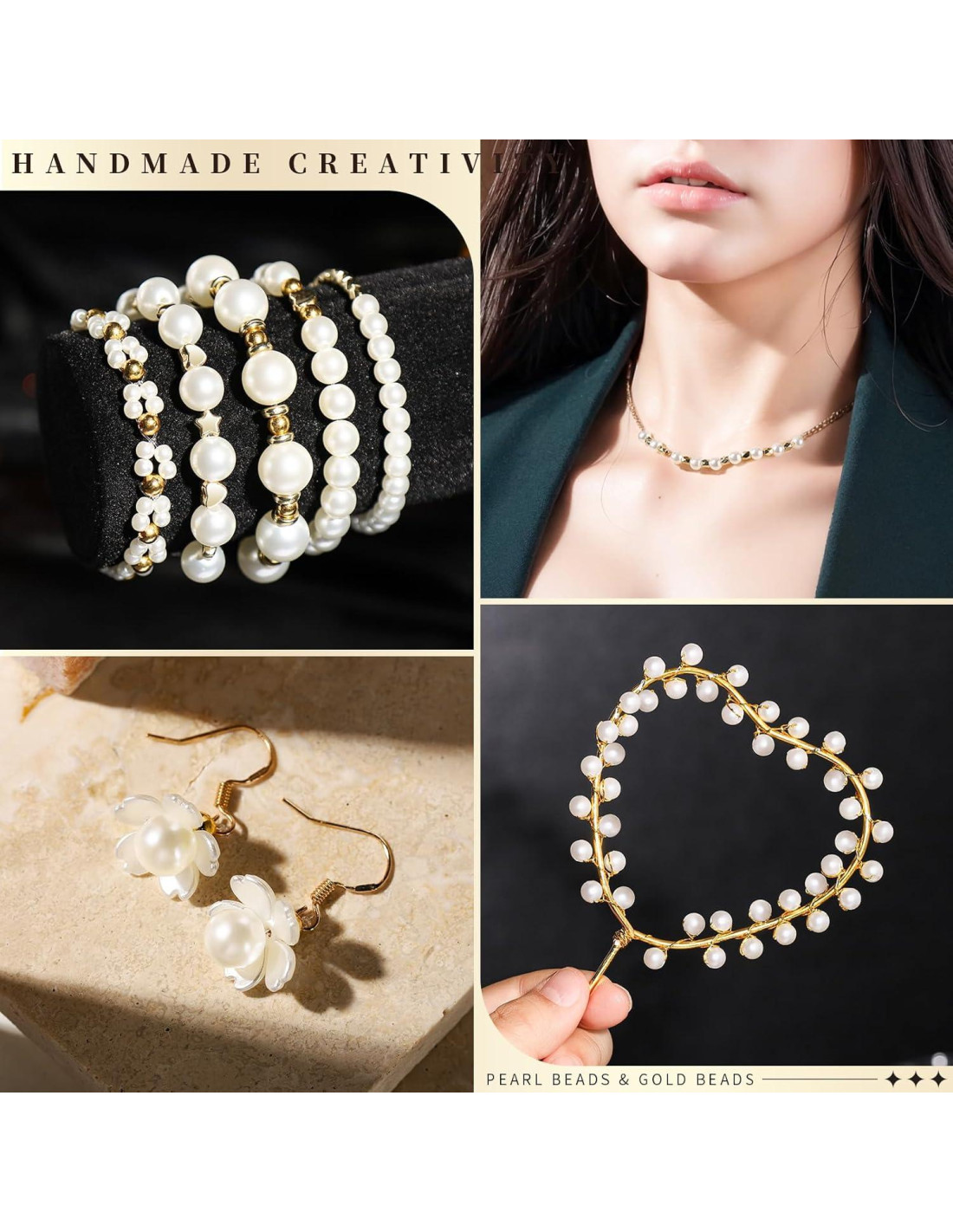 - Hermosas Perlas para Fabricación de Joyería - Las perlas blancas cremosas combinan bien con las perlas espaciadoras doradas metálicas, lucen elegantes, perfectas para crear las pulseras más impresionantes, joyería, collares, aretes, anillos y más. También son una buena decoración para varios proyectos creativos DIY. Disfruta de horas de diversión, desde pulseras de conciertos hasta proyectos escolares.