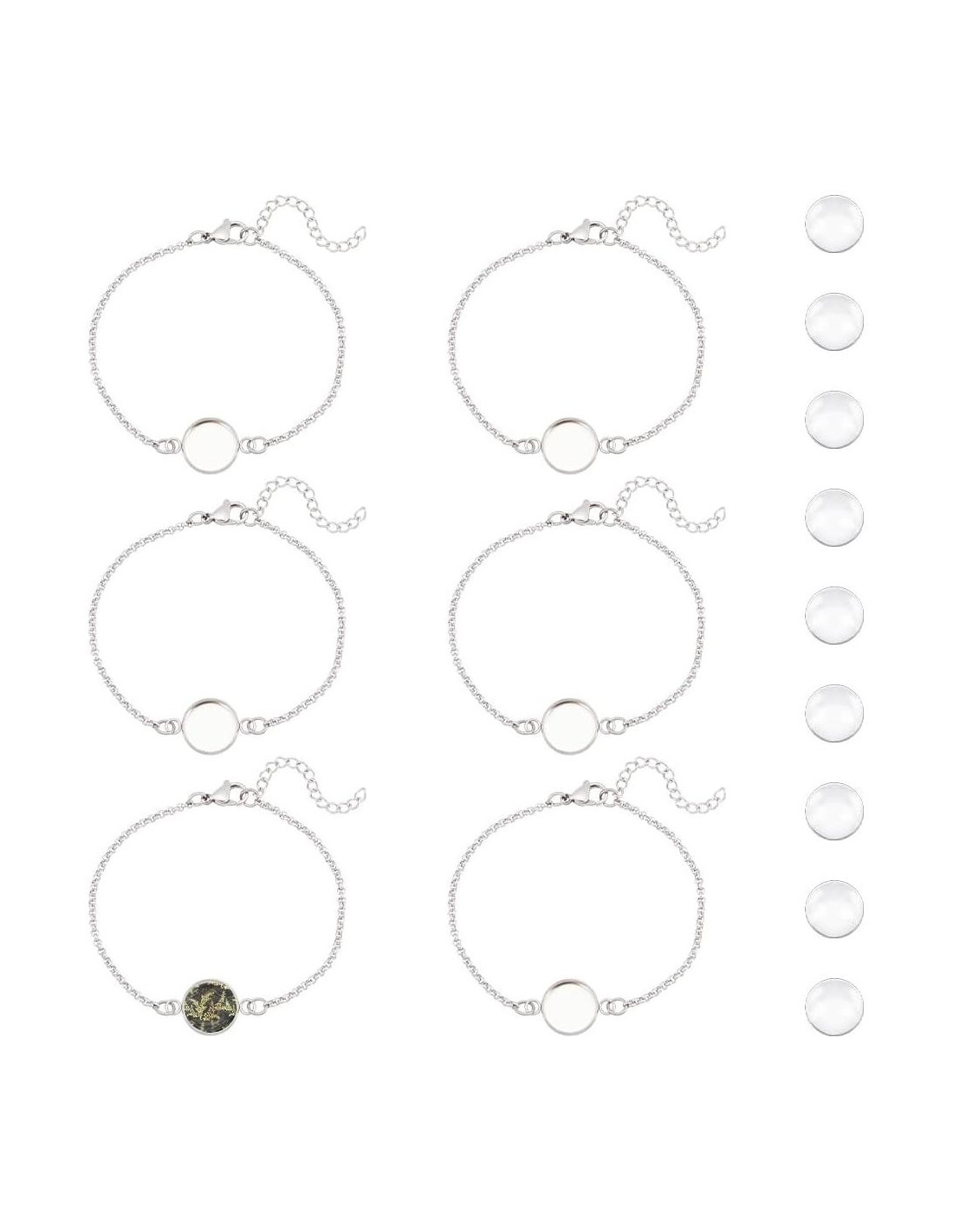 - Amplios usos: Estas configuraciones de pulsera con extensión de cadena y cabochones de vidrio son perfectas para hacer configuraciones de marco de cabochón, joyería personalizada, brazaletes, manualidades, joyería fotográfica, resina y más.