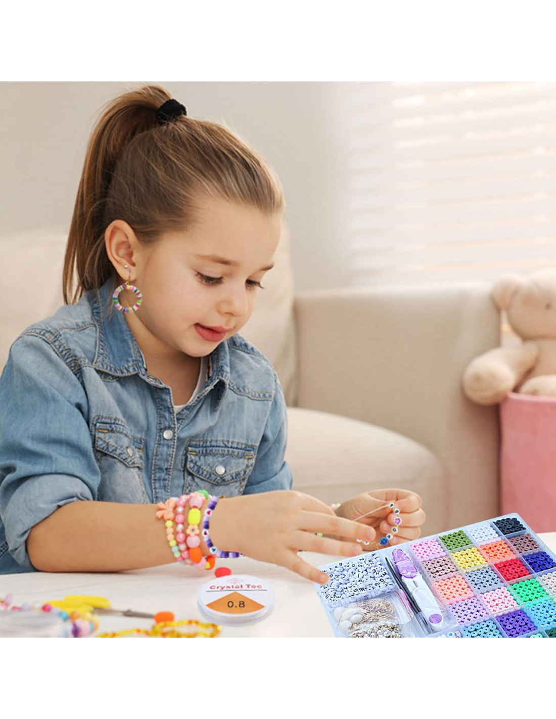 - [Una caja] Cuentas de arcilla polimérica para el kit de hacer pulseras, todo en una caja, contiene todos los accesorios y herramientas necesarios. Usando este kit de cuentas de arcilla se pueden hacer alrededor de 6-9 pulseras y aretes con tus amigos. Deja que estas pulseras de cuentas de arcilla atestigüen tu amistad.
