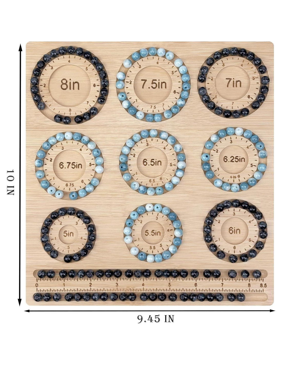 - [Fácil de usar] Cada paquete contiene un tablero de cuentas para hacer joyas, las cuentas y herramientas mostradas no están incluidas. Nuestro tablero de cuentas de bambú está hecho de bambú natural, que es de alta calidad y resistente, adecuado para hacer pulseras de diferentes tamaños.