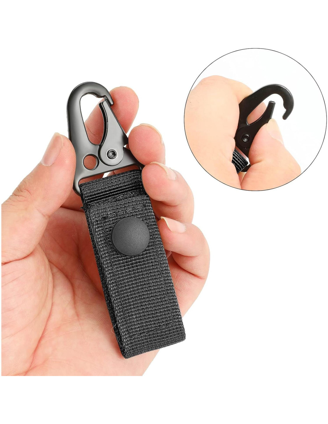 - El llavero de gancho de carabina se puede usar con cinturones casuales, cinturones tácticos, mochila táctica. Se adapta a cinturones de hasta 3 pulgadas (7,62 cm) de ancho.